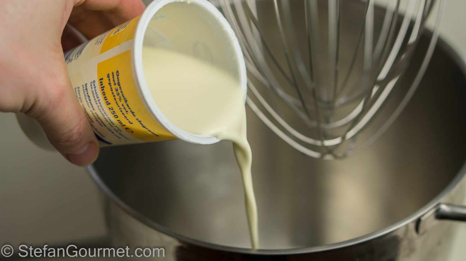 Pour the whipping cream into the bowl of a stand mixer fitted with a balloon whisk.