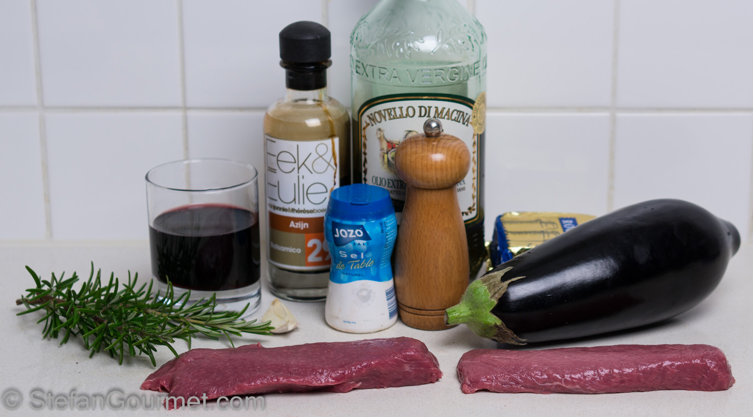 Pounding the lamb loin fillets into scaloppine makes them very quick and easy to cook. Cooking the lamb and making the sauce can be done in 10 minutes or so. Even including roasting the eggplant and photographing everything, I had this dish on the table in 30 minutes and it was very tasty indeed. The sauce worked very well with the lamb, as well as with the eggplant. The lamb was tender and tasty. I will definitely prepare lamb this way again. Thanks for the inspiration, Kathryn! Here’s what I did…