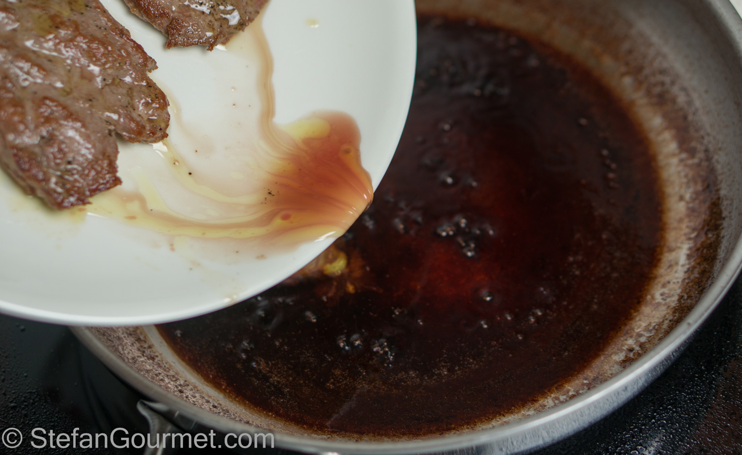 When the sauce has been reduced nicely, return the scaloppine to the pan.