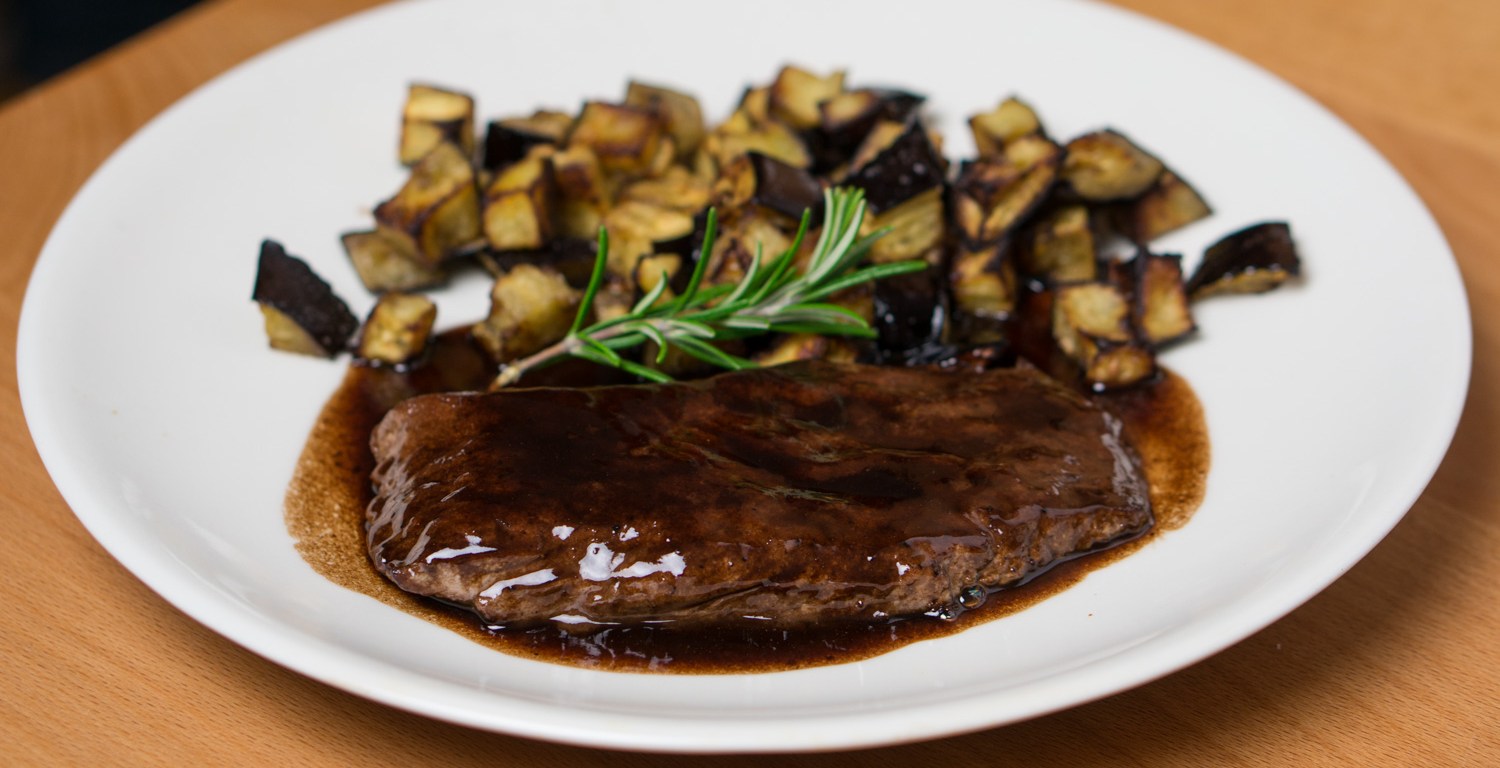 Serve the lamb along with the roasted eggplant, together with the sauce. The crispy eggplant is best when dipped in the sauce.