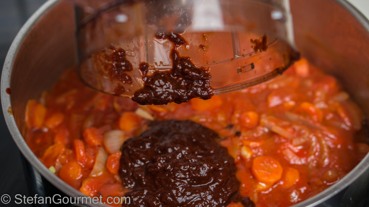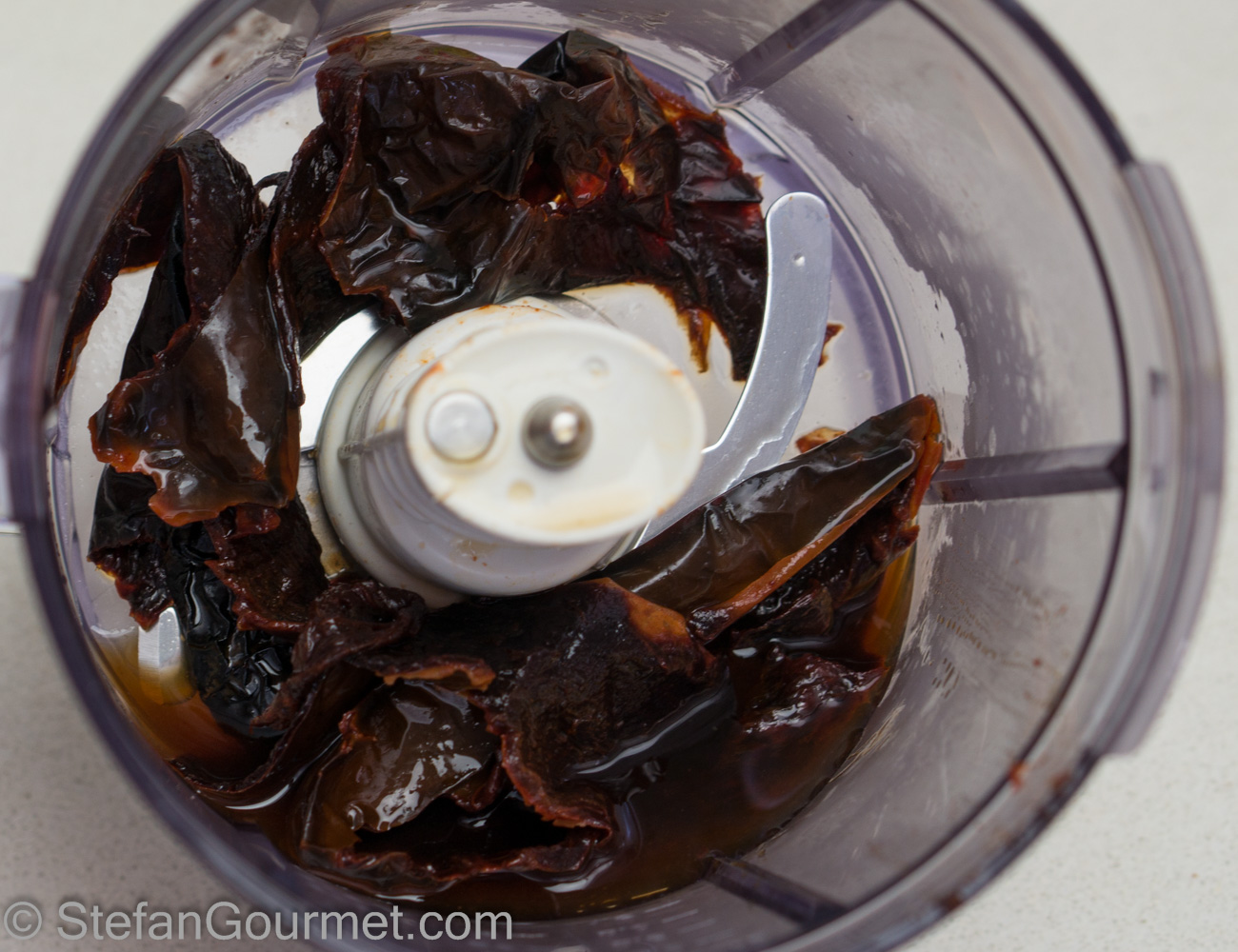 …to obtain a puree. Add more of the chile cooking liquid and scrape down the sides as needed.