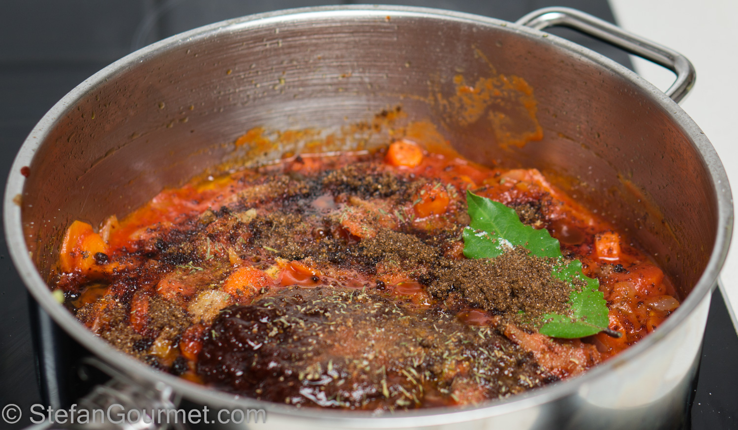 …and the sugar, marjoram, thyme, bay leaf, salt and sugar. Stir to incorporate.