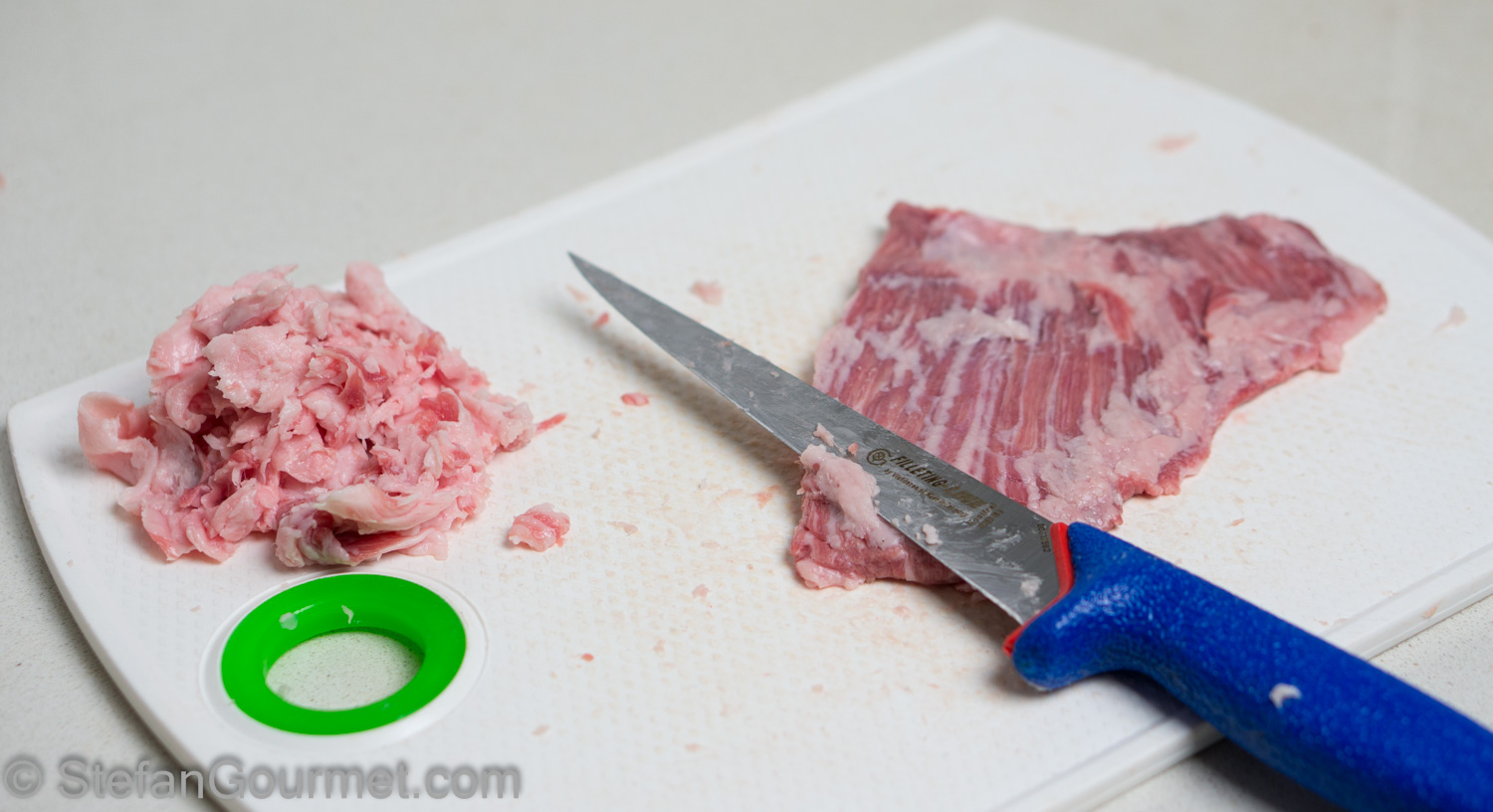 An additional technique I applied to increase the flavor, was to trim the meat of excess fat and render the fat from that to brown the meat at the end. This serves two purposes: it makes the dish less greasy, as because of the cooking technique not a lot of fat renders from the meat otherwise, and it adds more iberico pork flavor than using butter or oil for the browning.