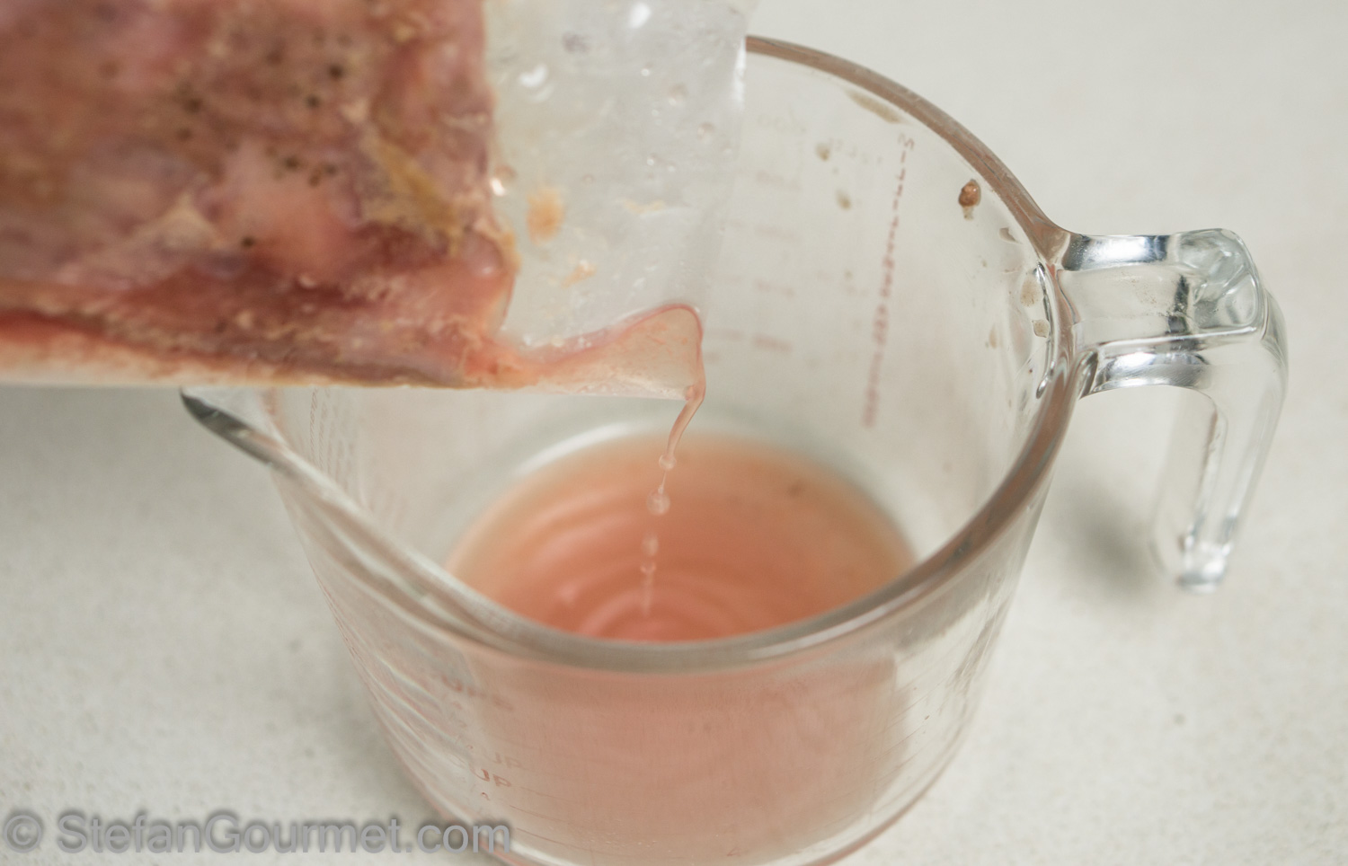 After cooking for 24 hours, open the bags and pour all of the juices into a container.