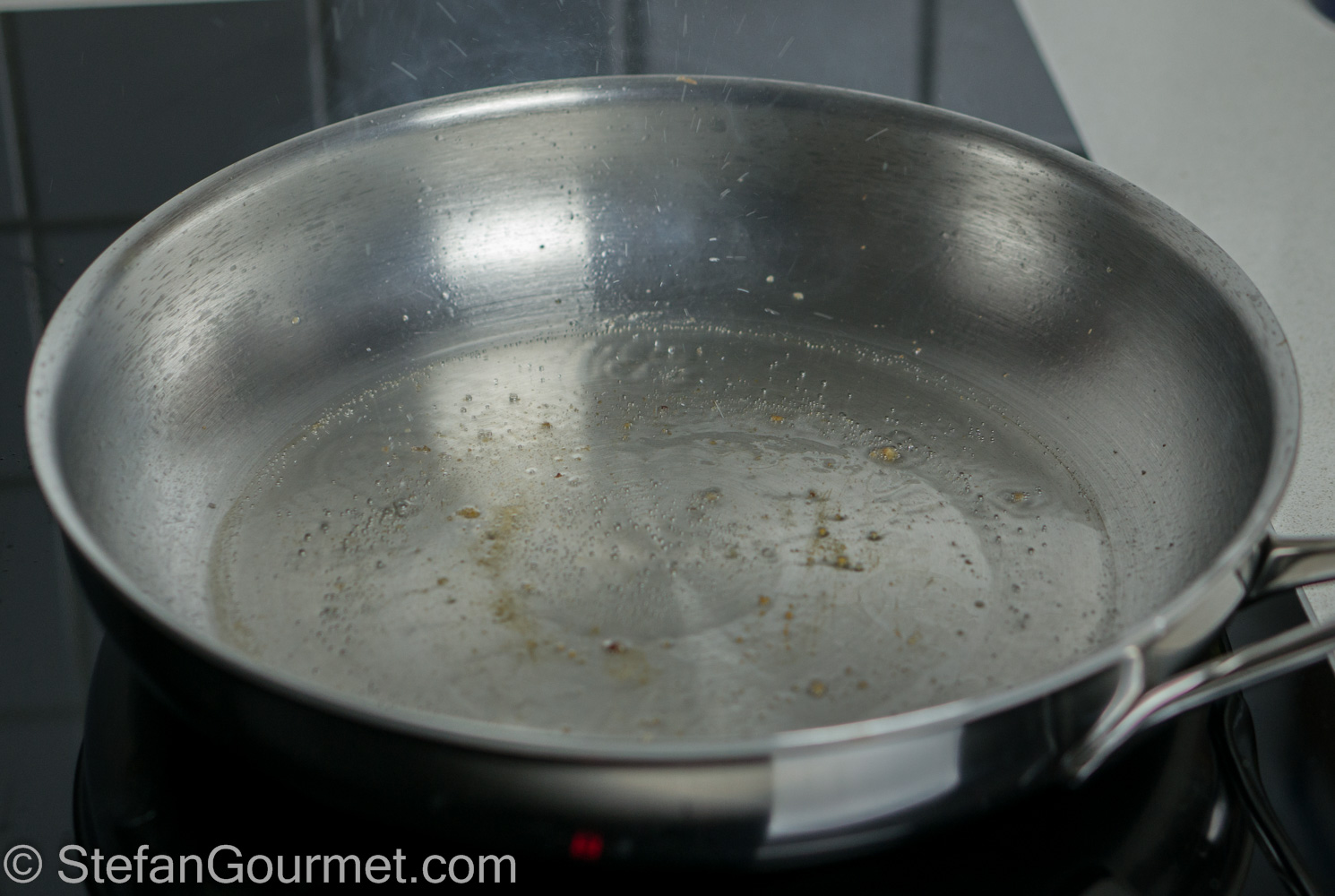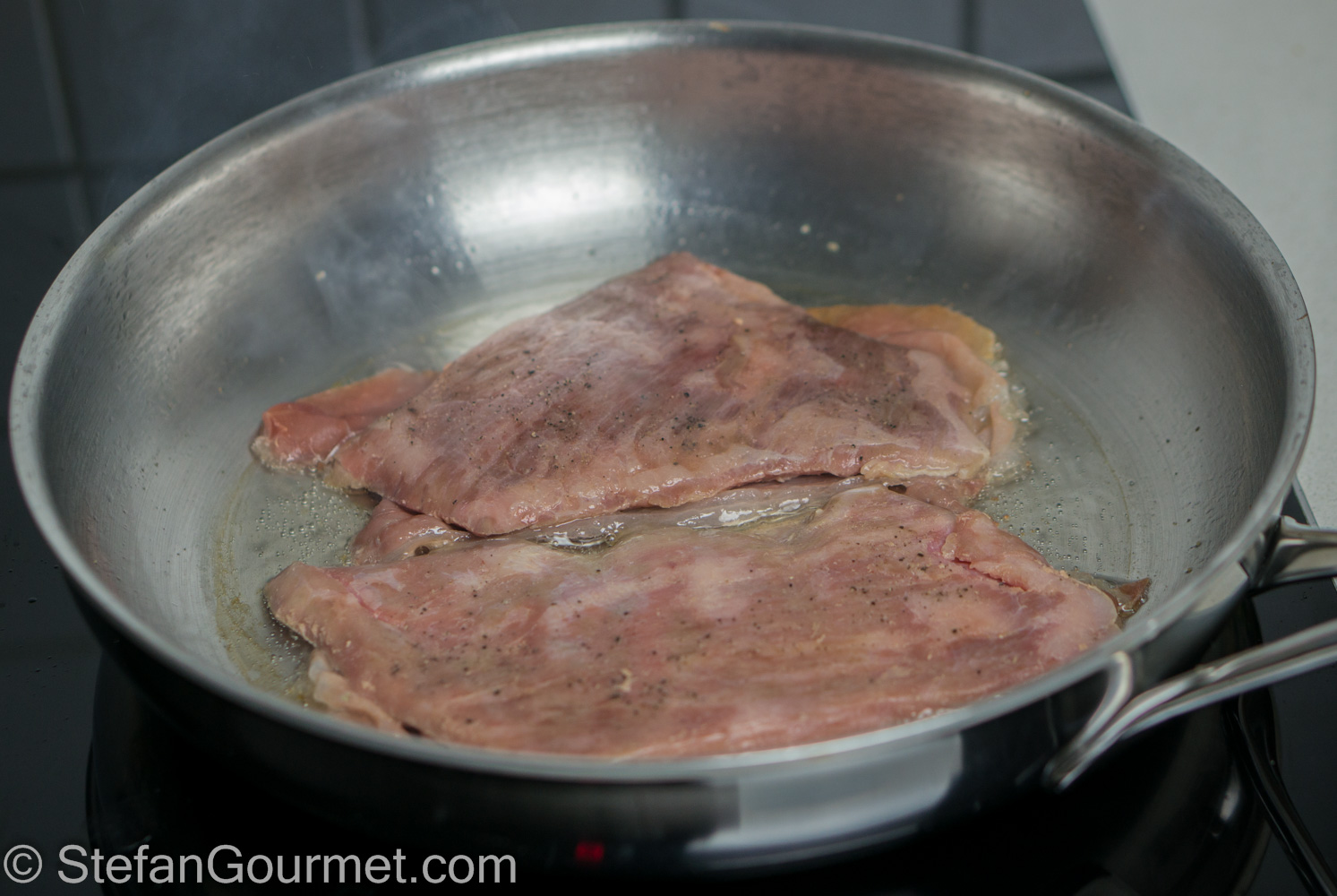 Turn them over and cook for another minute. Take the meat out of the pan and put on preheated plates.