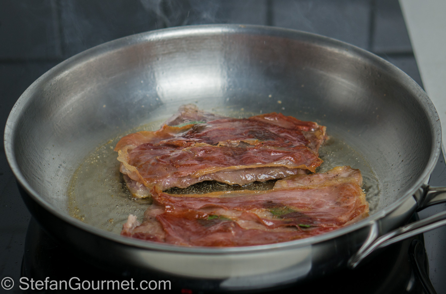 After cooking sous-vide, I proceeded as normal for saltimbocca. The result was amazing! This iberico saltenboca has lots and lots of flavor. Sage and pork are always friends, and here the combination of the unctuous meat, the crispy jamón and the sage is just wonderful. And, apart from waiting for 48 hours for the sous-vide to do its thing, it is really a quick and easy dish!