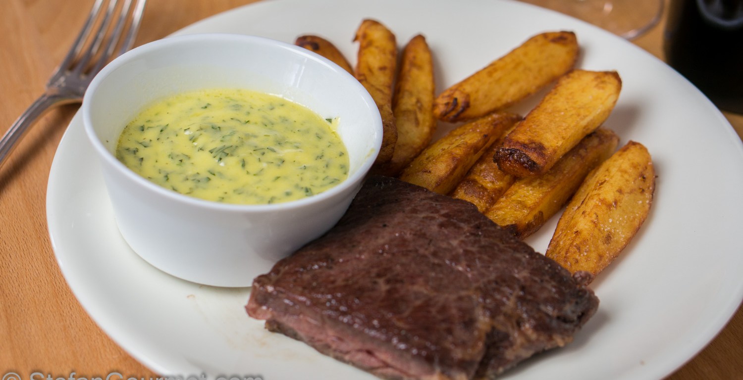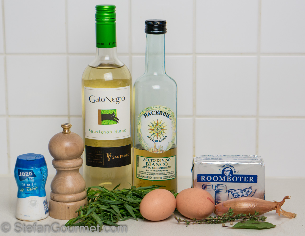 Béarnaise is one of the classic sauces from French cuisine and it is great with steak. The traditional way of preparing it au bain marie requires quite a bit of skill, as the sauces curdles easily. It also requires you to make clarified butter first. And even though you should make clarified butter to cook the steak anyway, using a slightly different technique you can make sauce béarnaise easily with minimal risk of curdling.