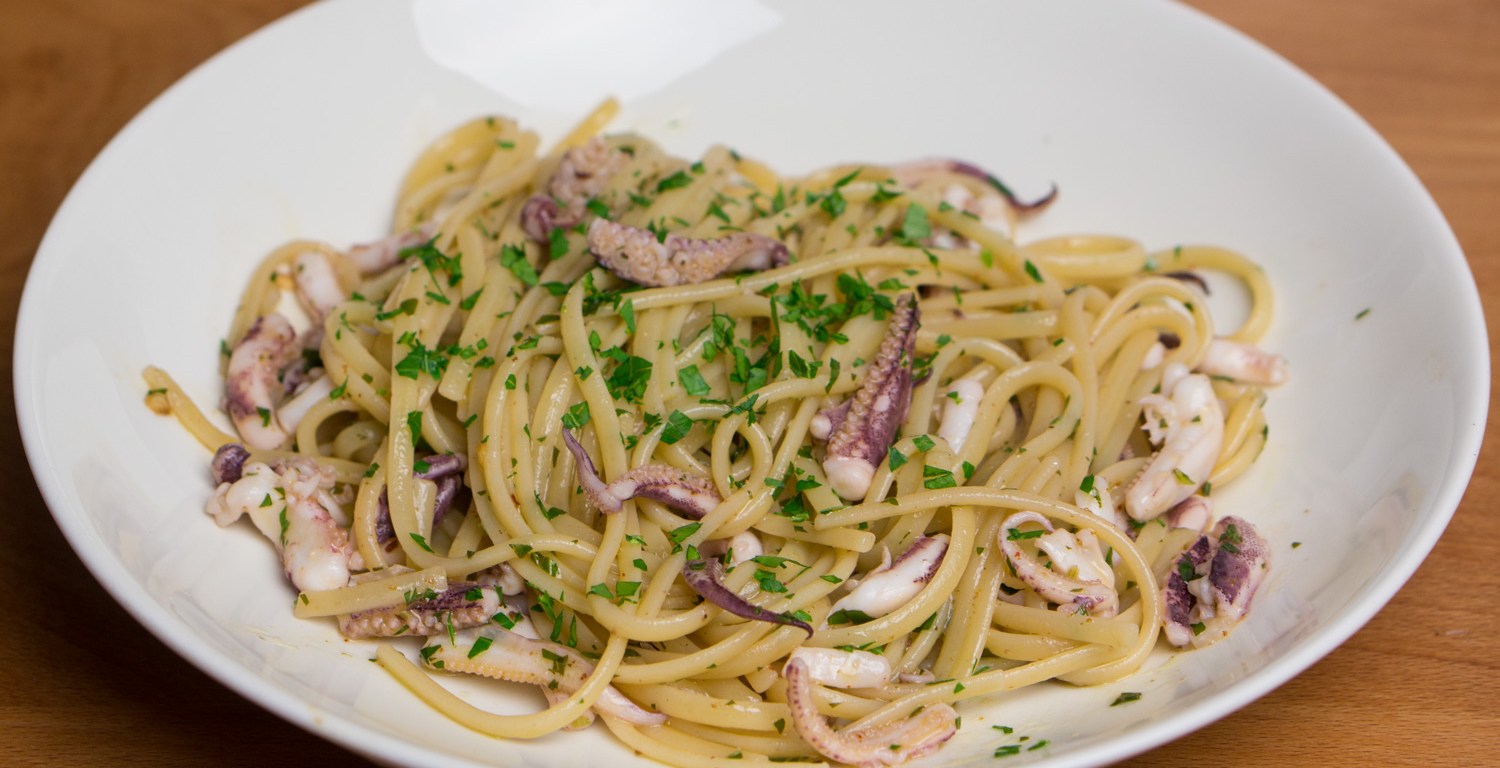 Calamari are mostly known as deep fried rings. They are especially delicious when you make them from fresh calamari. Calamari do not only consist of a body (that is cut into rings) but they also have tentacles. You could deep fry those as well, but you could also use them to make a great pasta dish. It takes about 20 minutes to turn leftover calamari tentacles into linguine ai tentacoli di calamari. It is quick, simple, and delicious. Just like Italian food is supposed to be. Here’s what I did…