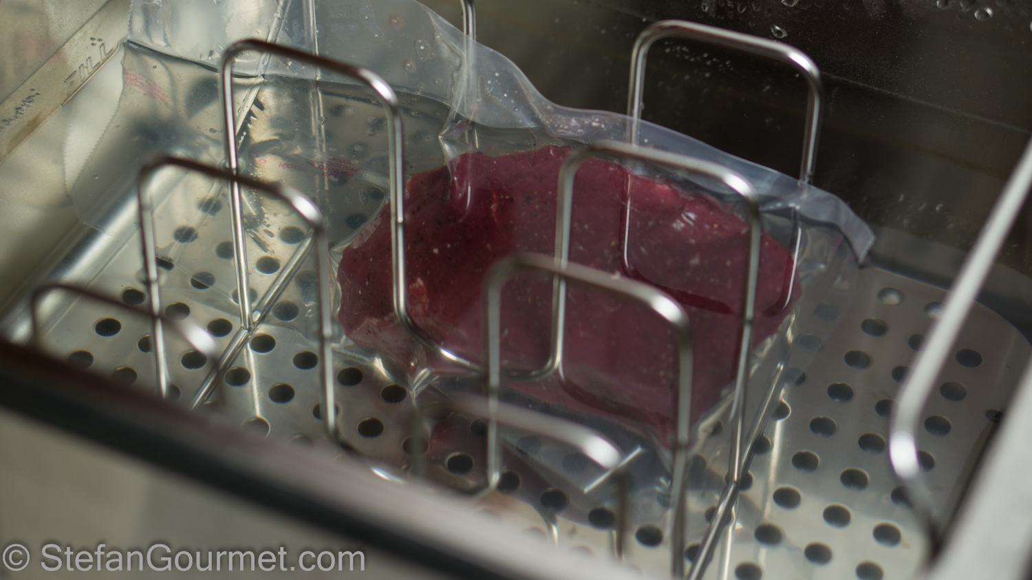Since this is farmed venison, I don’t think of it as gamey. But I suppose that if you are very sensitive to gaminess, you may find it to be accentuated. If this cut were to be cut traditionally, it would be braised and obtain a completely different flavor profile. The sous-vide venison in this case is like venison steak.