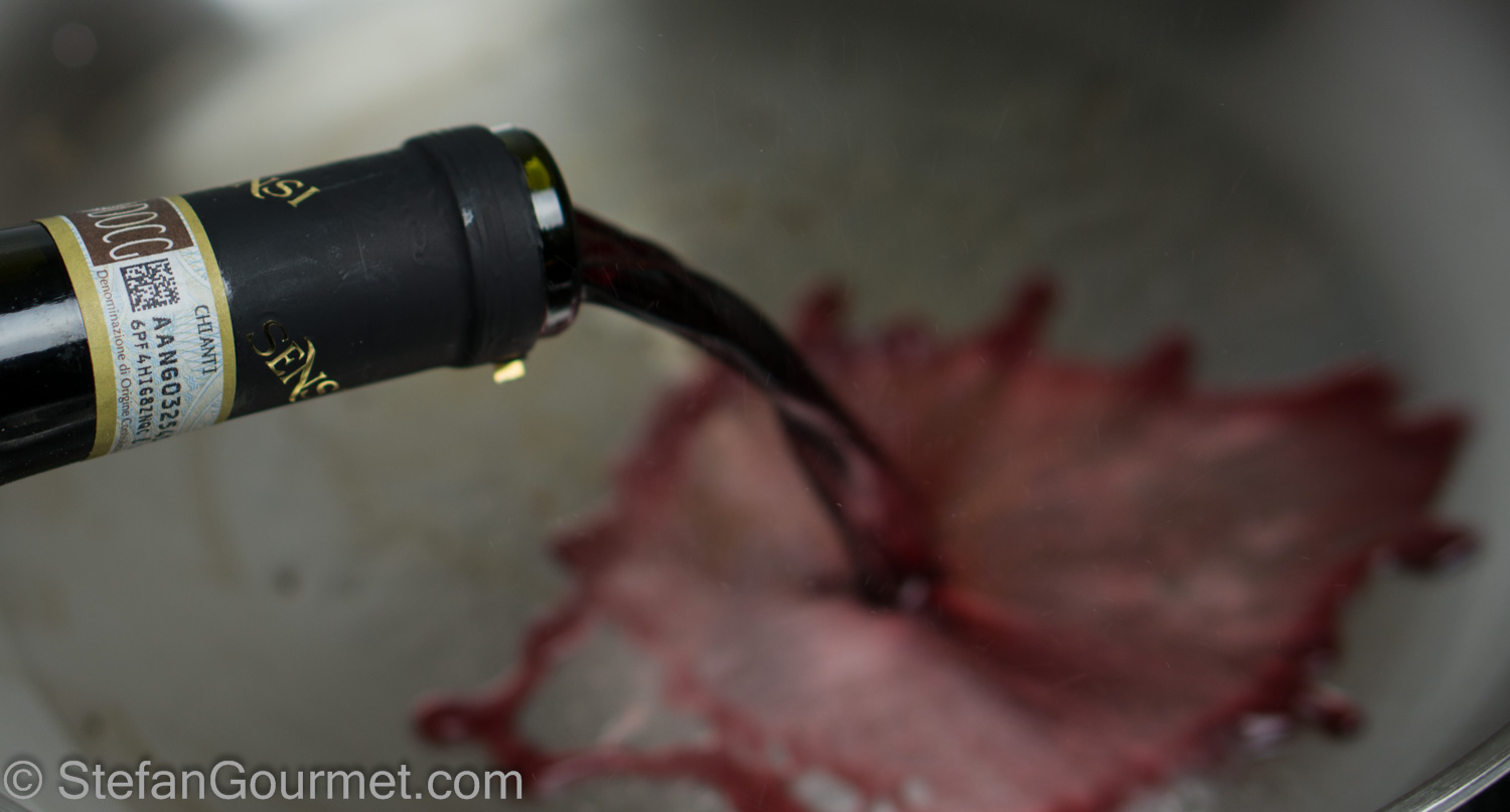 Deglaze the pan with red wine, scraping with a wooden spatula to loosen any browned bits that got stuck to the pan and include them into the sauce for additional flavor.