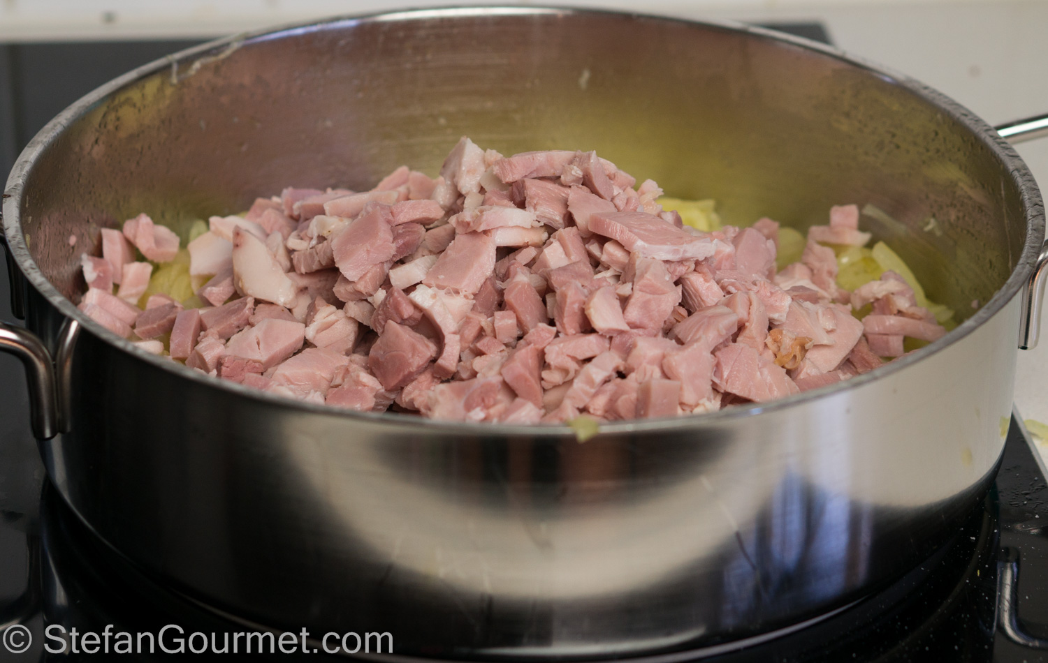 600 grams (1.3 lb) ham, diced