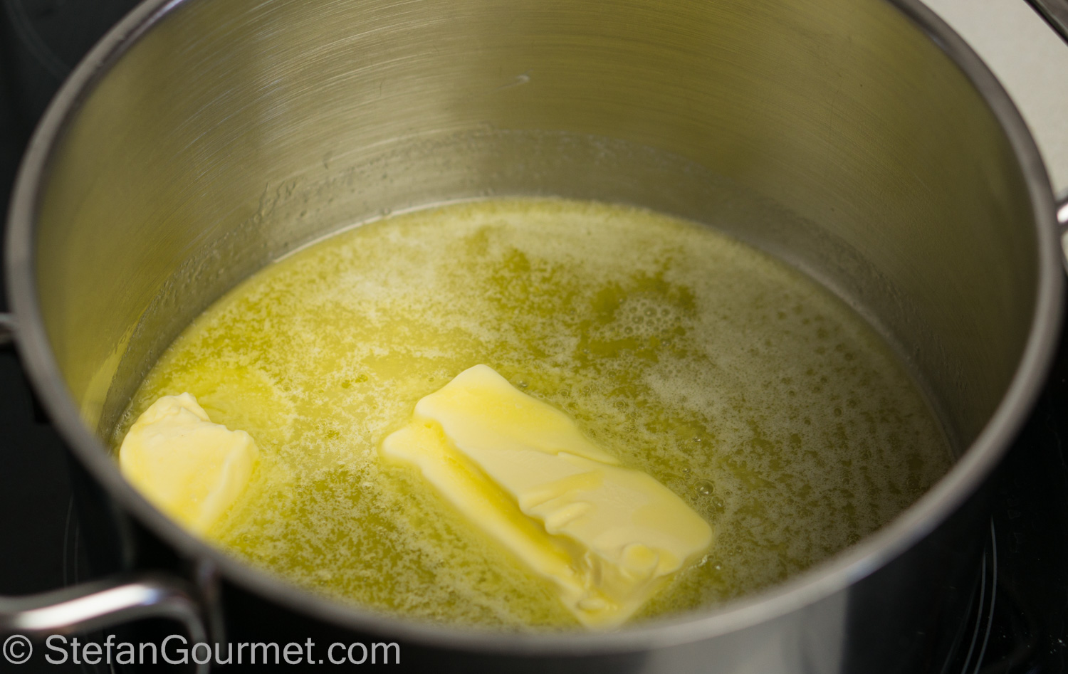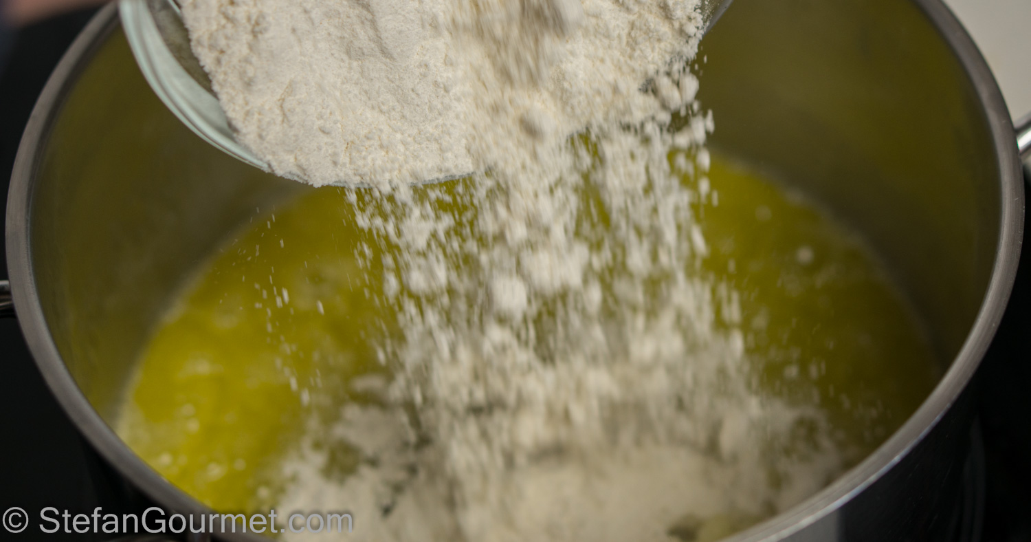 Meanwhile, make the bechamel. Melt the butter in a saucepan over medium heat. Meanwhile, heat up the milk in another saucepan or the microwave. It should not boil but you should see bubbles at the edge.