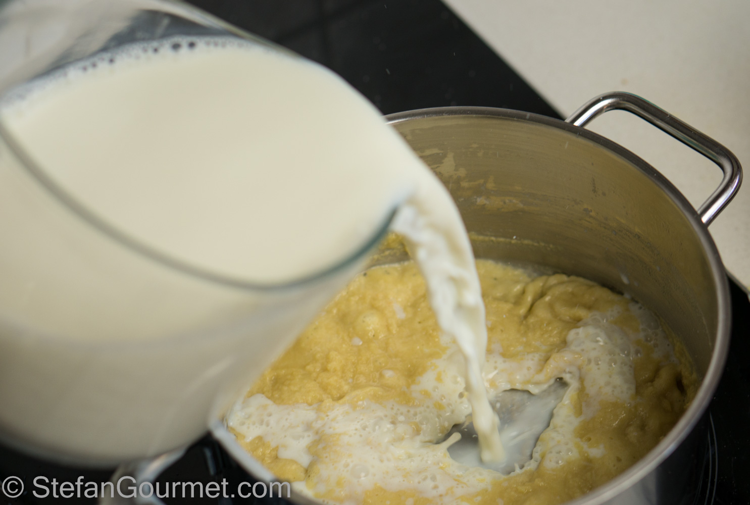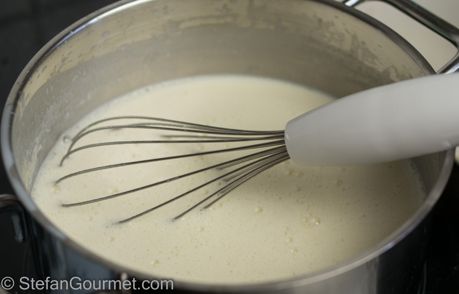 Whisk quickly to avoid lumps.