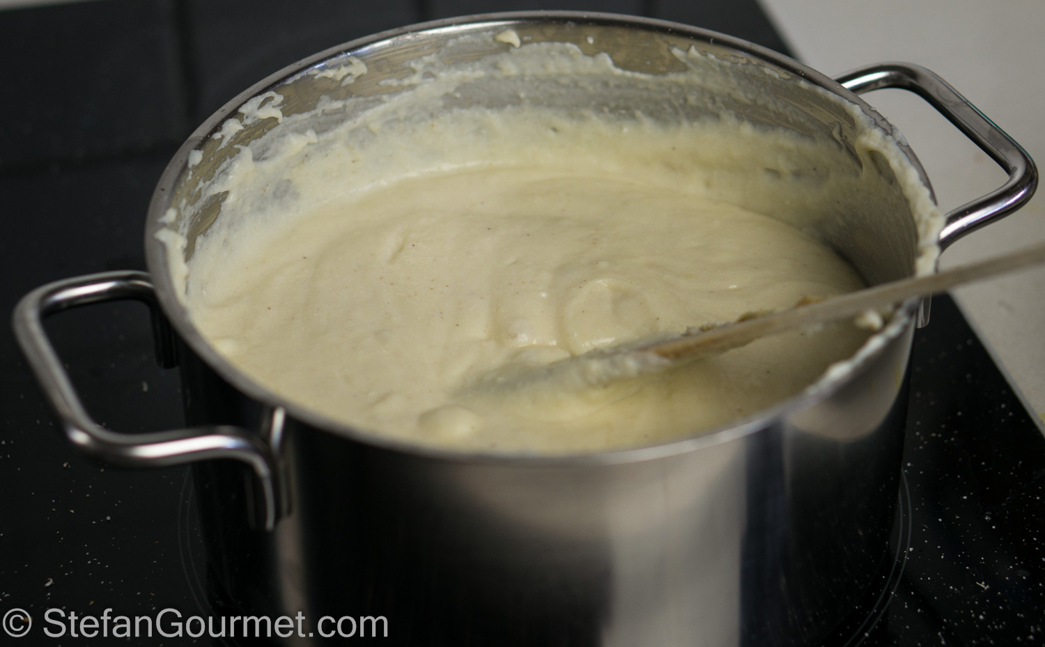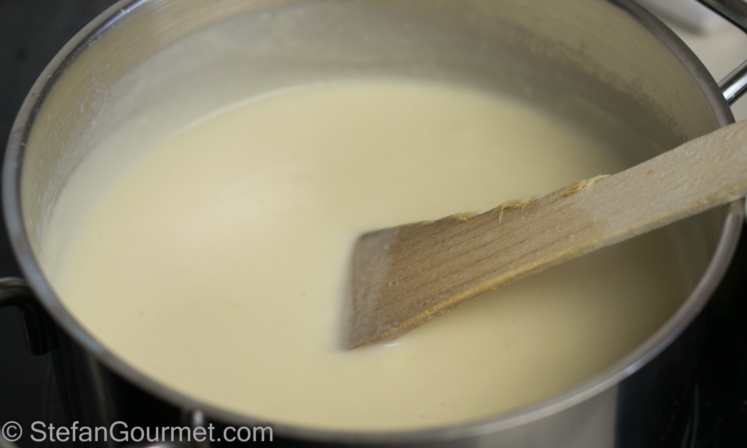 Cook over medium heat, stirring, until the bechamel thickens. Then turn off the heat.