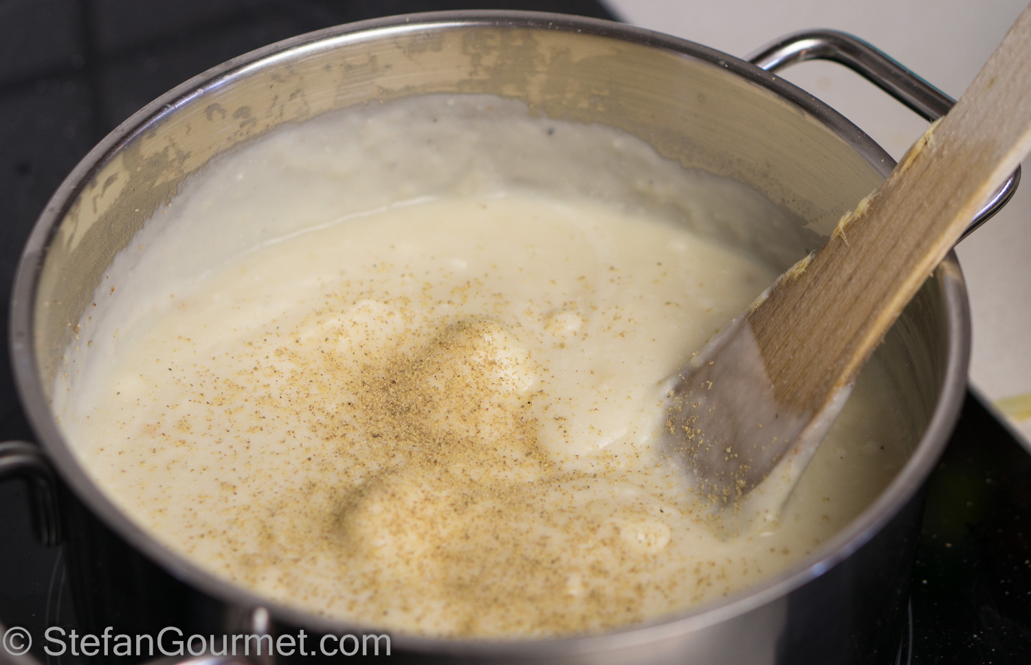 Taste and adjust the seasoning with salt and freshly ground white pepper.