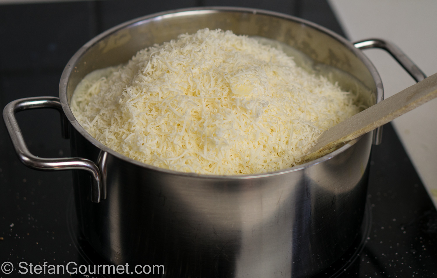 Add 250 grams of the freshly grated parmigiano.