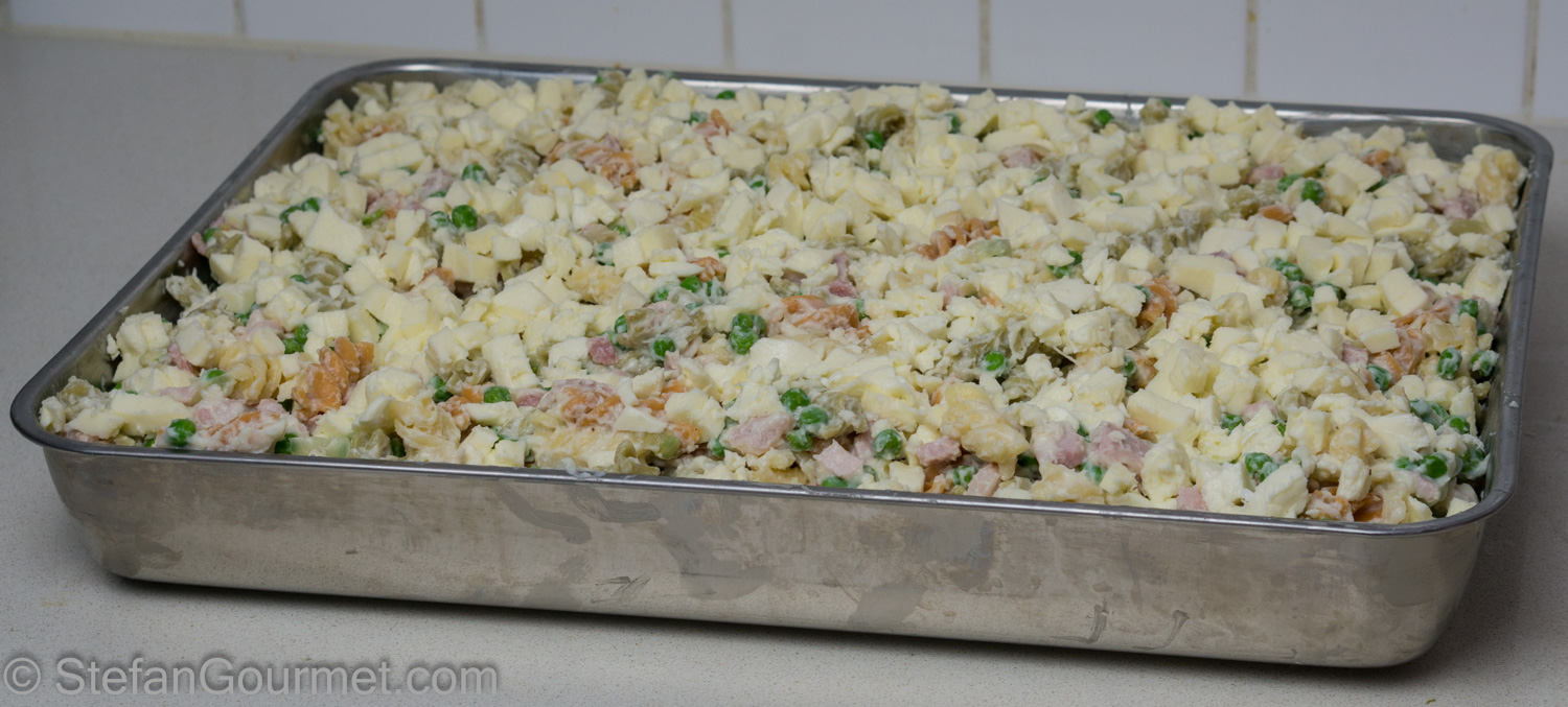 Arrange the diced mozzarella on top.