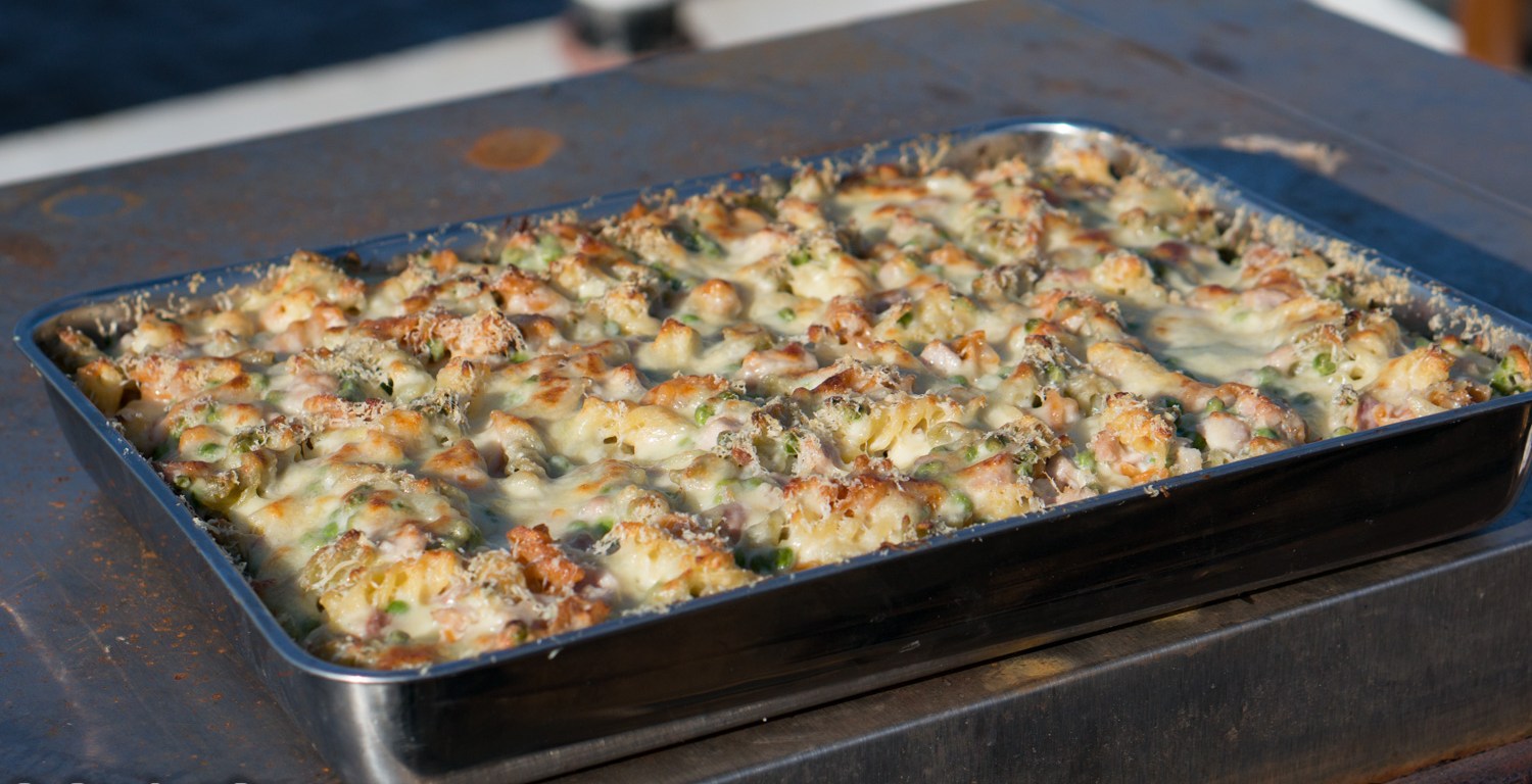 Kees is working on the boat and I contribute by luring friends to help out by providing dinner. After a day of hard work, a baked pasta dish seemed like a good idea. This was also very practical, as I could prepare everything at home and bring the dish to the boat to finish in the oven there.