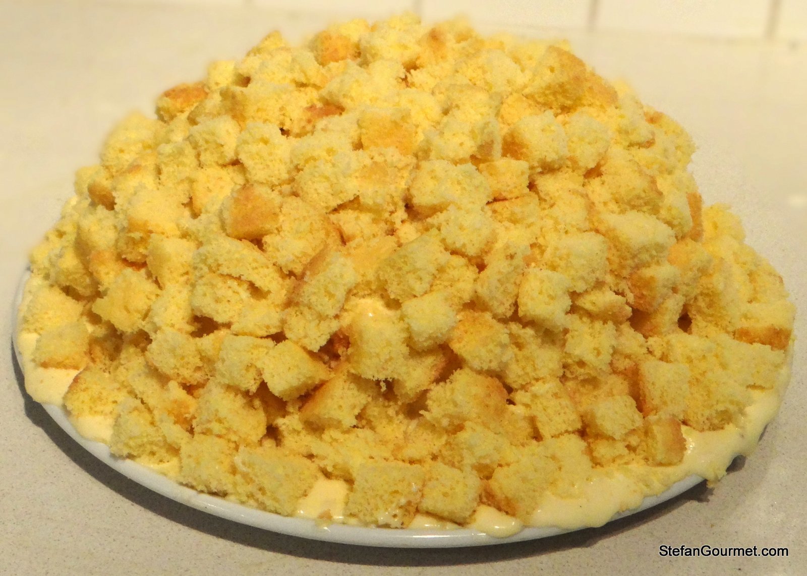 Torta Mimosa is made of sponge cake and pastry cream only, but the effect is quite stunning and it tastes great as well. It looks like mimosa blossoms, hence the name.