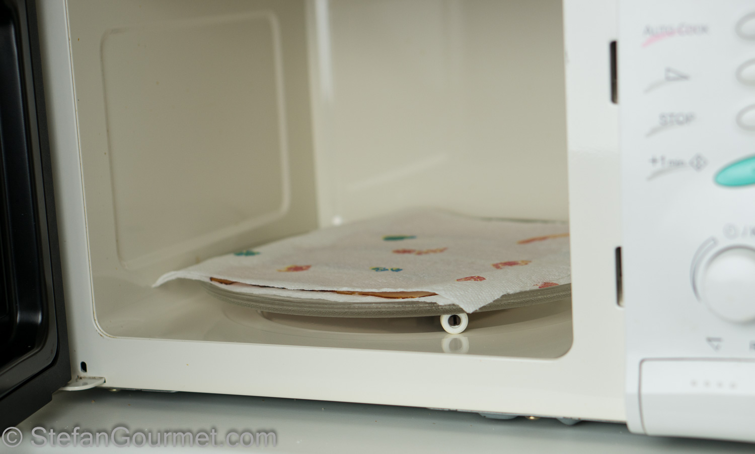 Cover with another paper towel, and cook in the microwave on full power for 1 minute.