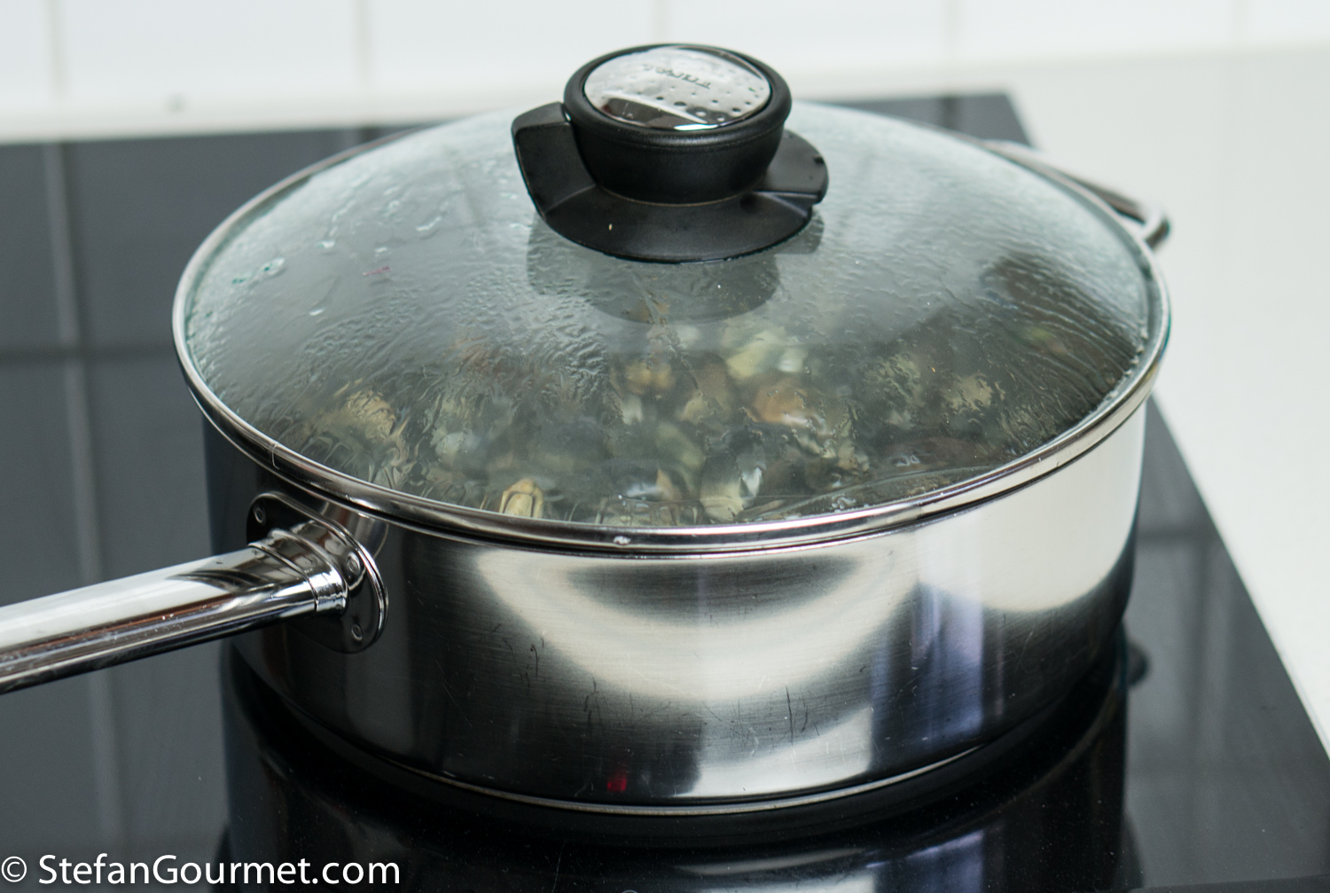 Thanks Eha! I cook the clams until they open. The glass cover is handy for that 😉 I guess 2-3 minutes is a pretty good estimate.