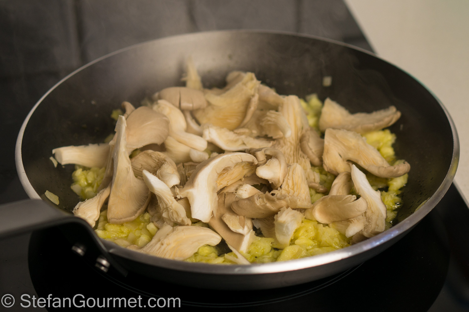 150 grams (6 oz) oyster mushrooms, cleaned and sliced thickly