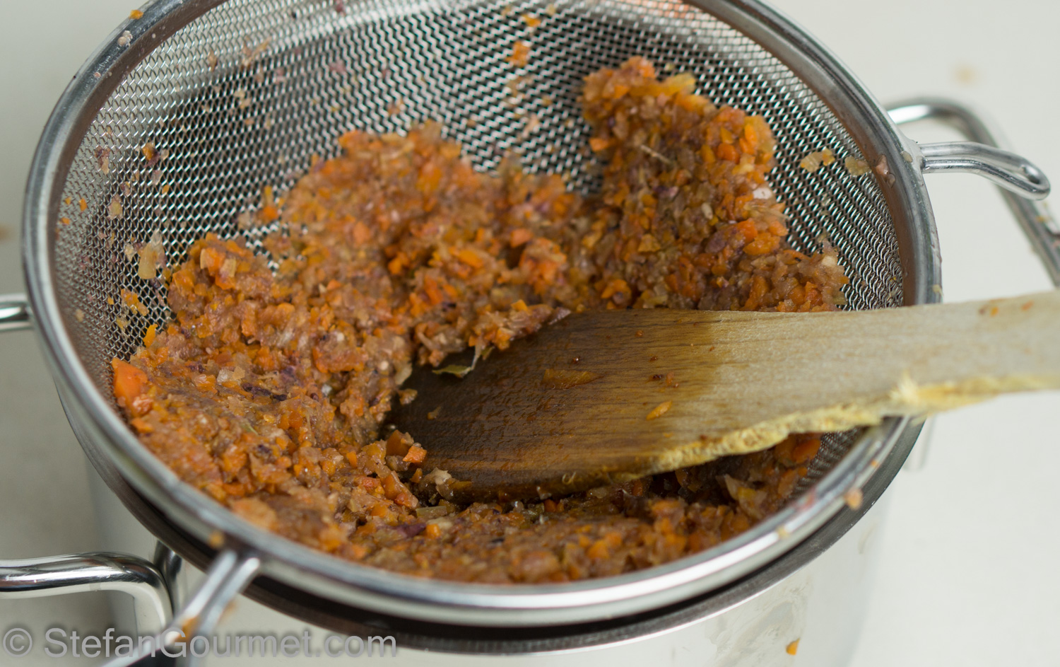 …pressing down on the vegetables to get as much liquid as possible.