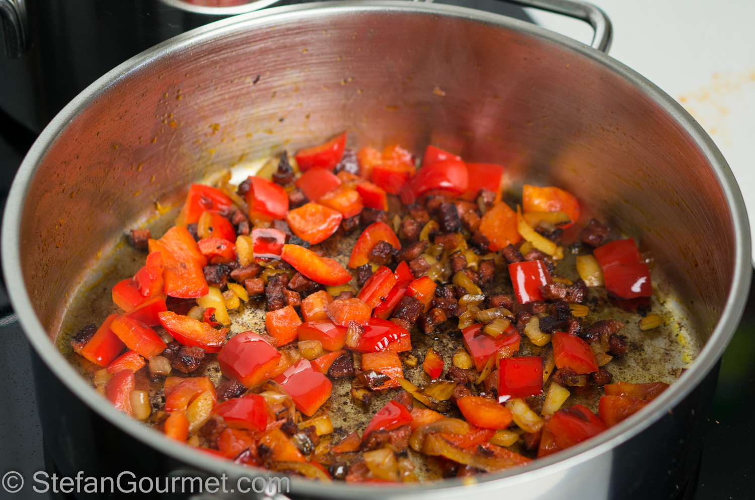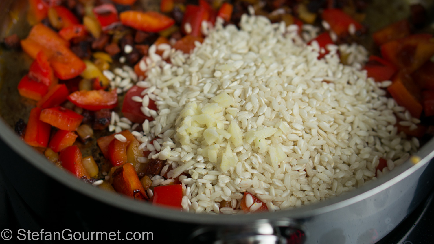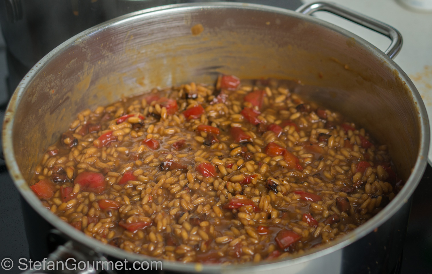 I love it when a reader reports about having tried a recipe from this blog, and even more so when they post a picture on Stefan’s Gourmet Blog’s Facebook page. Jev Kuznetsov did something similar, as he started with my recipe for octopus sous-vide, and then used it to make risotto with chorizo. I really liked that idea, and so I made this as well.