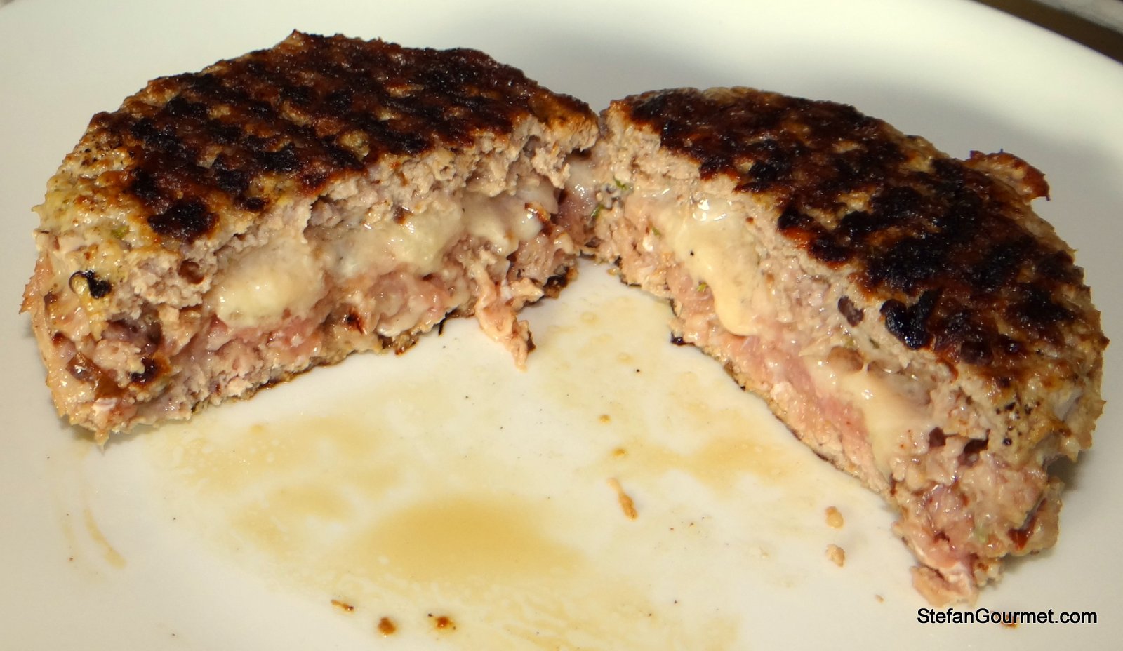 Pork burgers mixed with pickled chipotles and stuffed with cheese. A recipe from Richard McGary that is loaded with flavor and that I prepare regularly because it is so good.