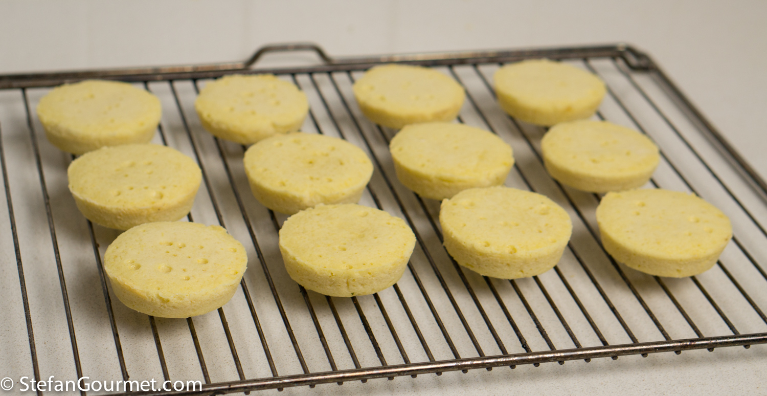 Bake at 160°C/320°F (fan forced) until a toothpick inserted in the center comes out clean, about 20 minutes. The cookies should not rise and should not brown (a little golden is nice though).