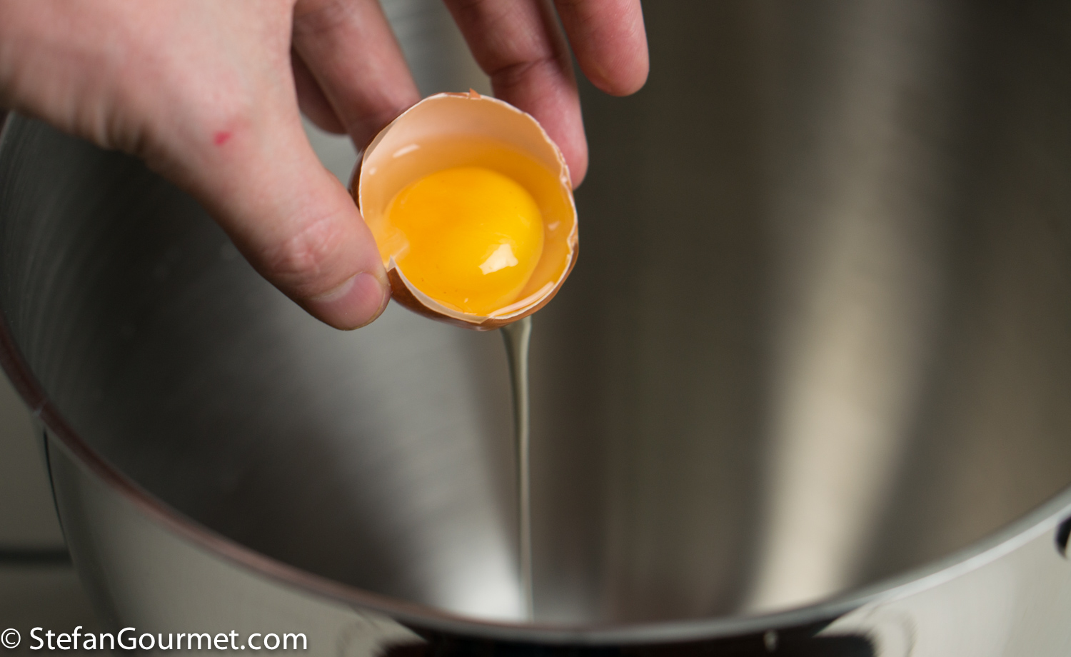 To make the glaze, put an egg white in a bowl. (I put it in the bowl of my stand mixer, but I soon realised that whisking by hand was a lot easier.)