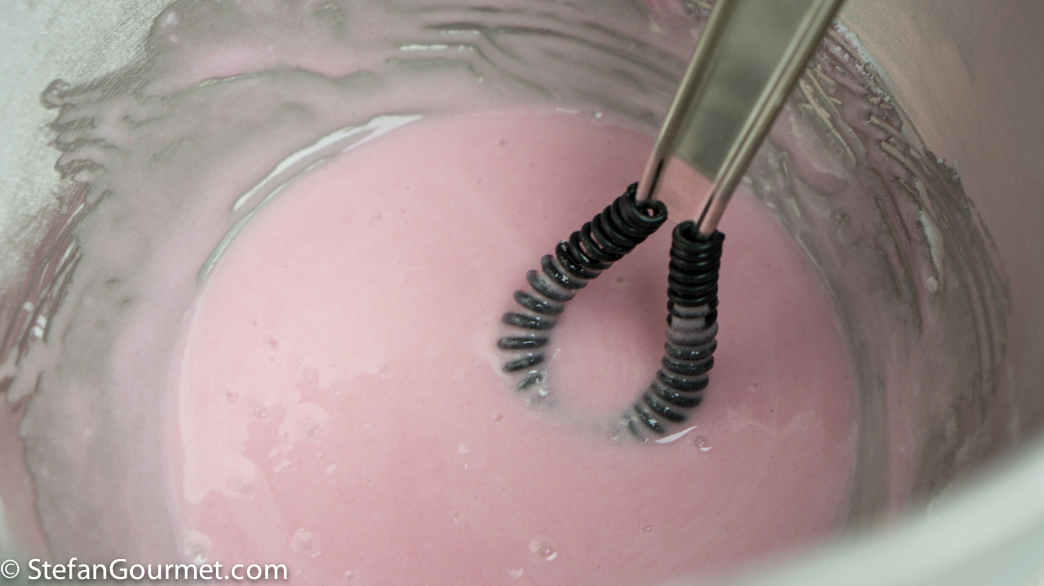 Because it is Pride week in Amsterdam, the GLBT network at the office thought it would be nice to treat our co-workers to some pink glazed cookies (roze koeken or glacés in Dutch). The usual store-bought roze koeken are full of so-called “E-numbers”, EU-approved food additives. I thought it would be nice to treat my co-workers to home baked roze koeken from natural ingredients instead. My co-workers agreed, and they were gone very quickly.