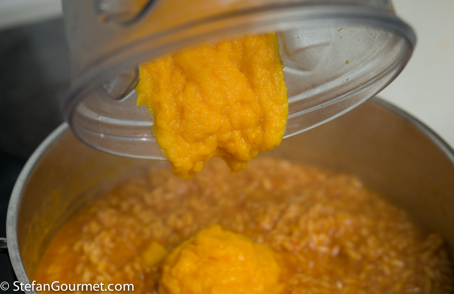 Add the pureed carrots to the rice…