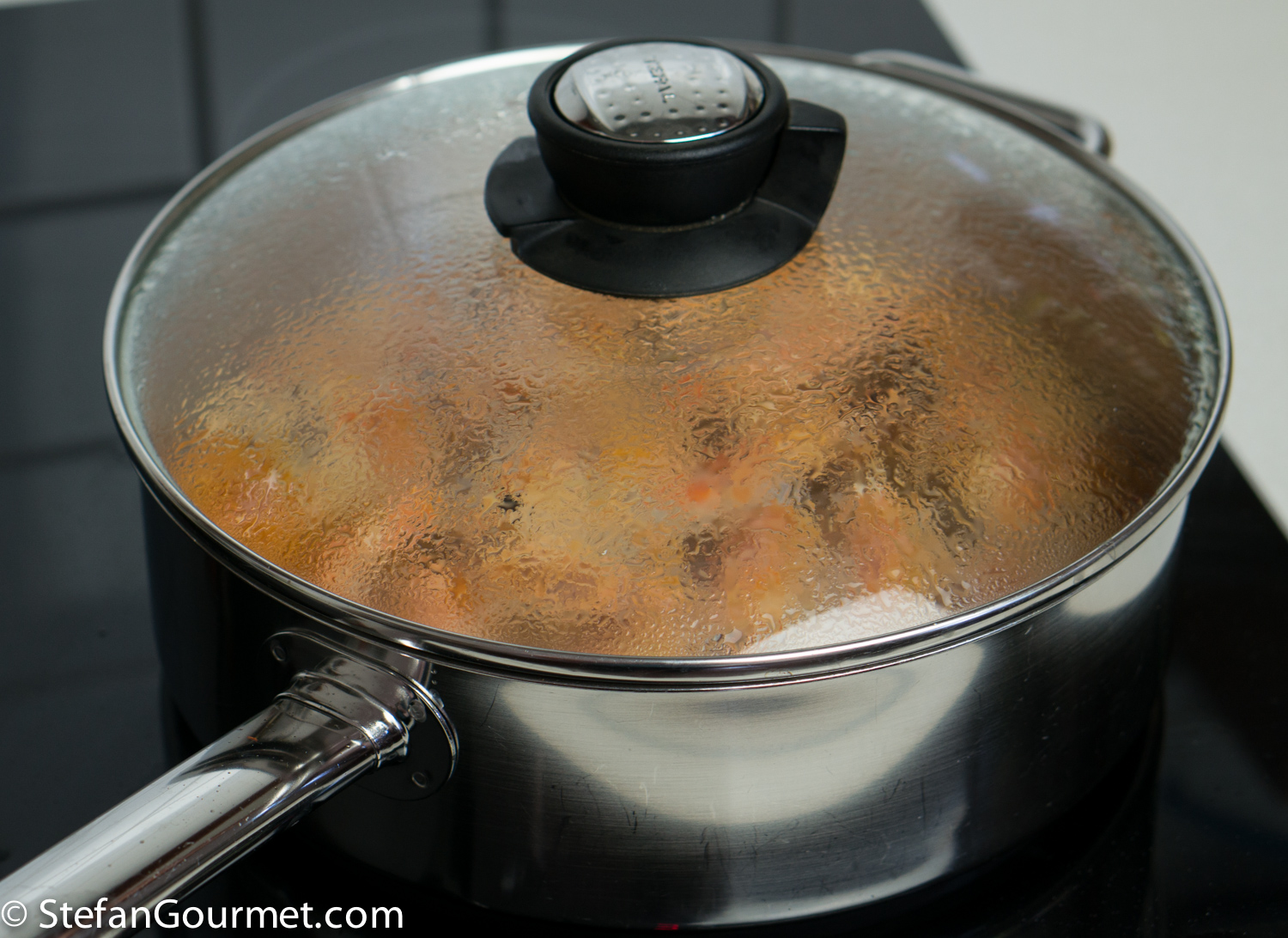 Bring to a boil, then cover and reduce the heat to a simmer, and allow to simmer for 20 minutes.