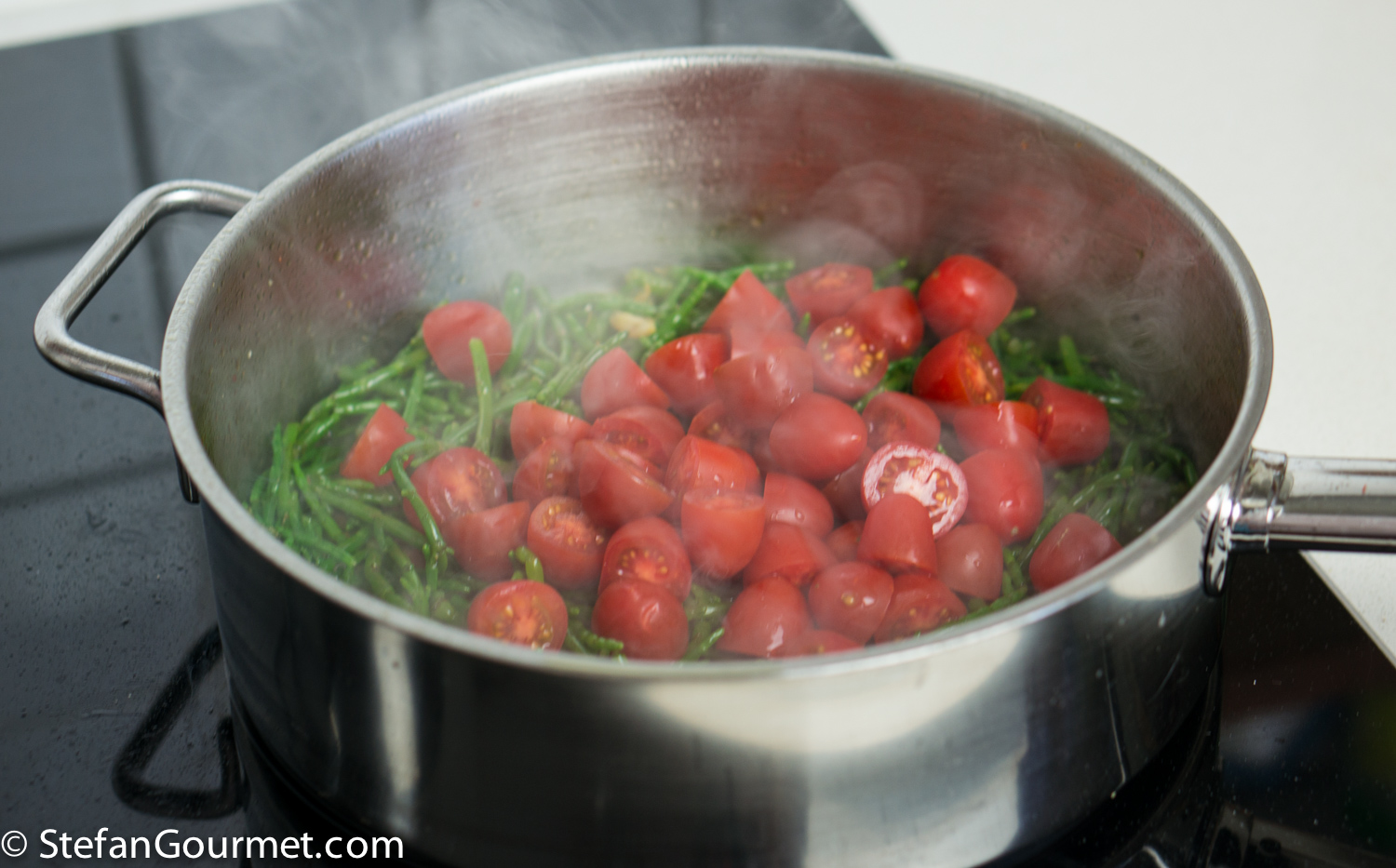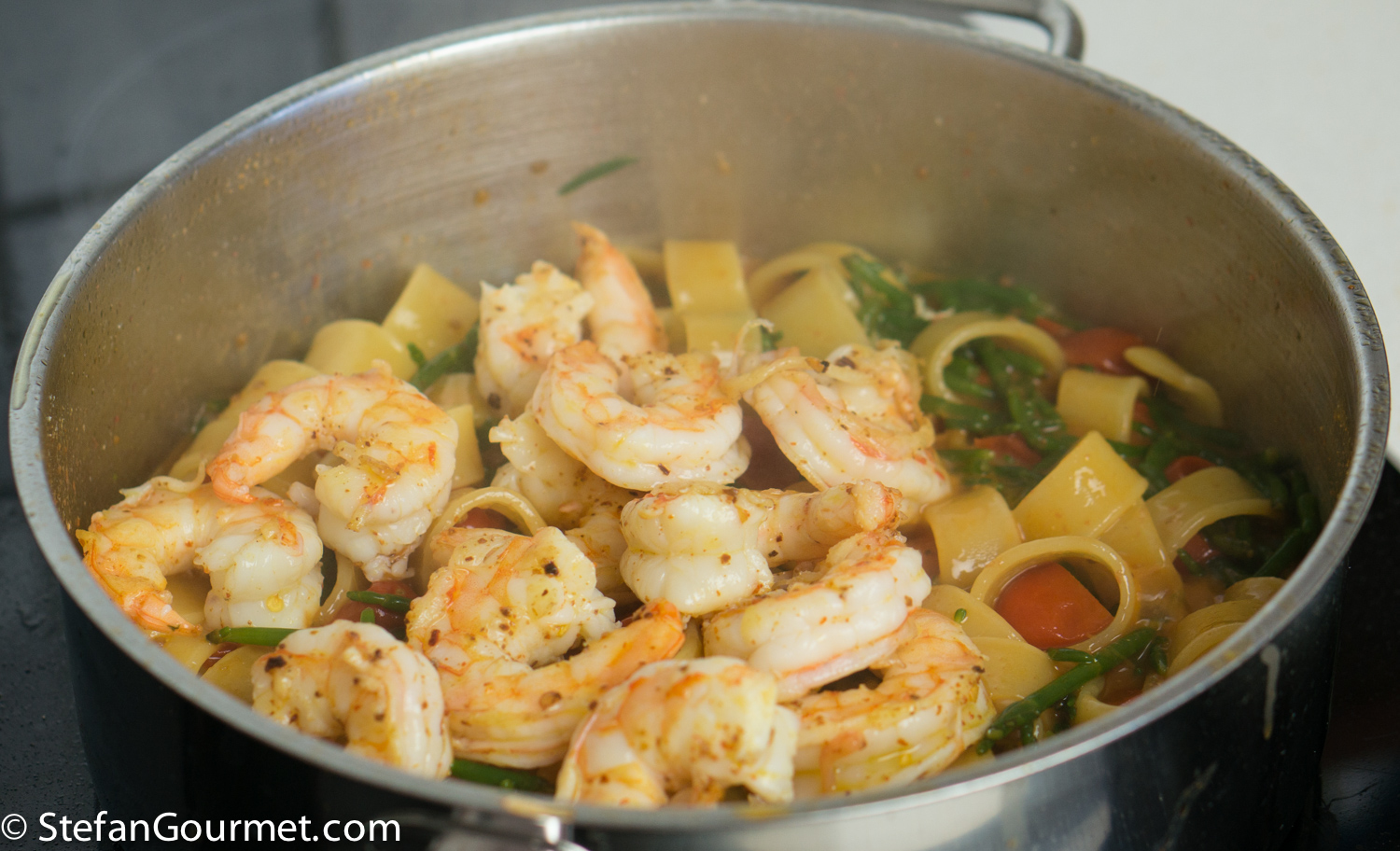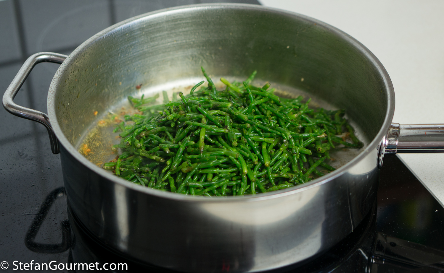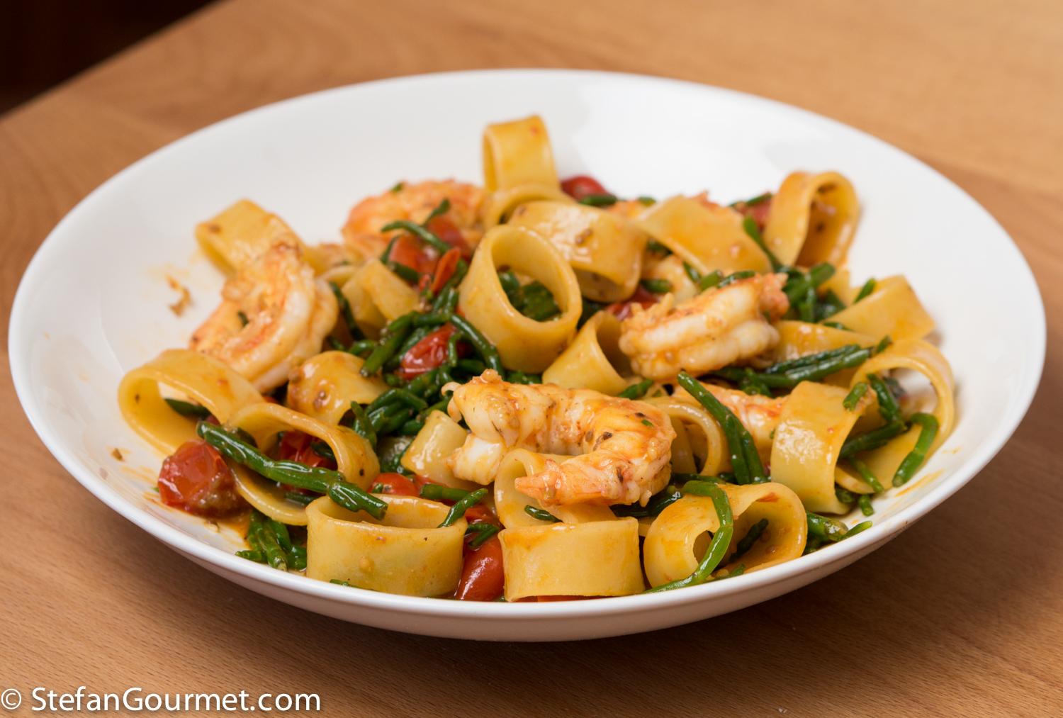 Very nice Stefan. Looks wonderful. We see samphire here occasionally and it’s relatively pricey. It’s called sea bean here – don’t know why. I love its salty, fresh bite. I use it in various salads because I like its succulence and texture. I never thought about cooking it. Given I have 5 lbs of shrimp in the freezer and some large penne (or farfalle), this may be dinner tonight. 🙂 Of course, I need to go to the market to see if they have samphire. 😮 Thanks.