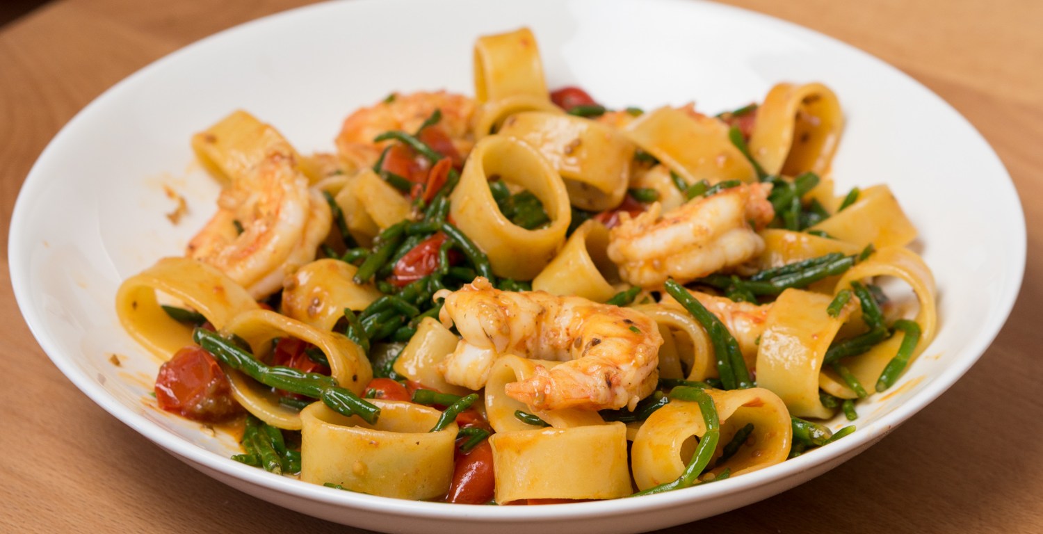 No samphire. 😦 I did, however, do a shrimp pasta dish tonight loosely based upon this recipe. Very delicious, indeed! 🙂