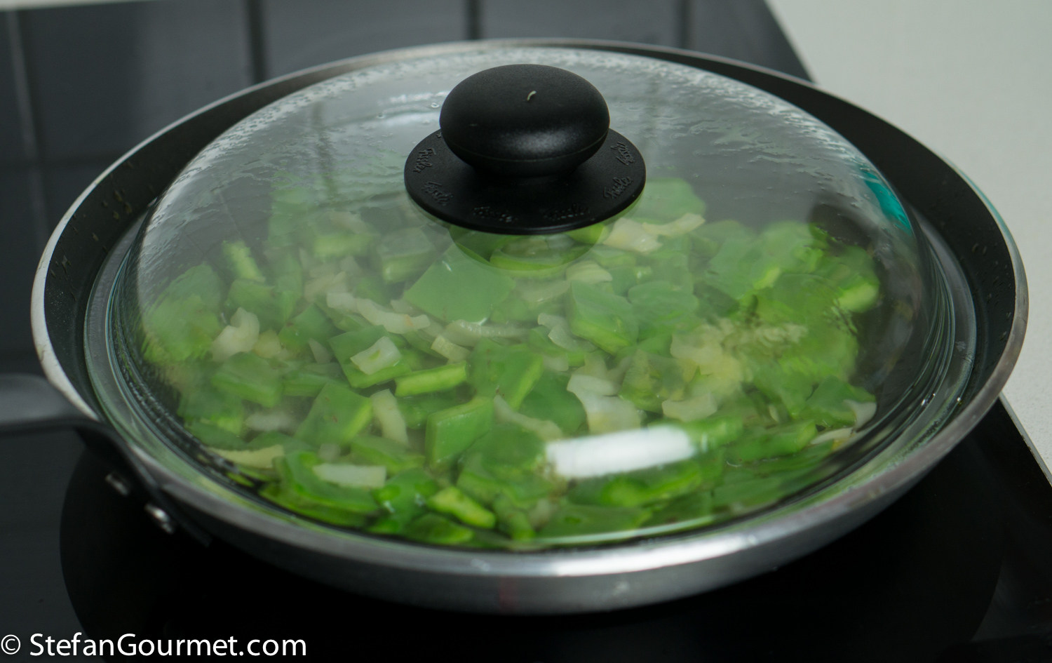 Cover the pan and cook over medium heat for 20 minutes.