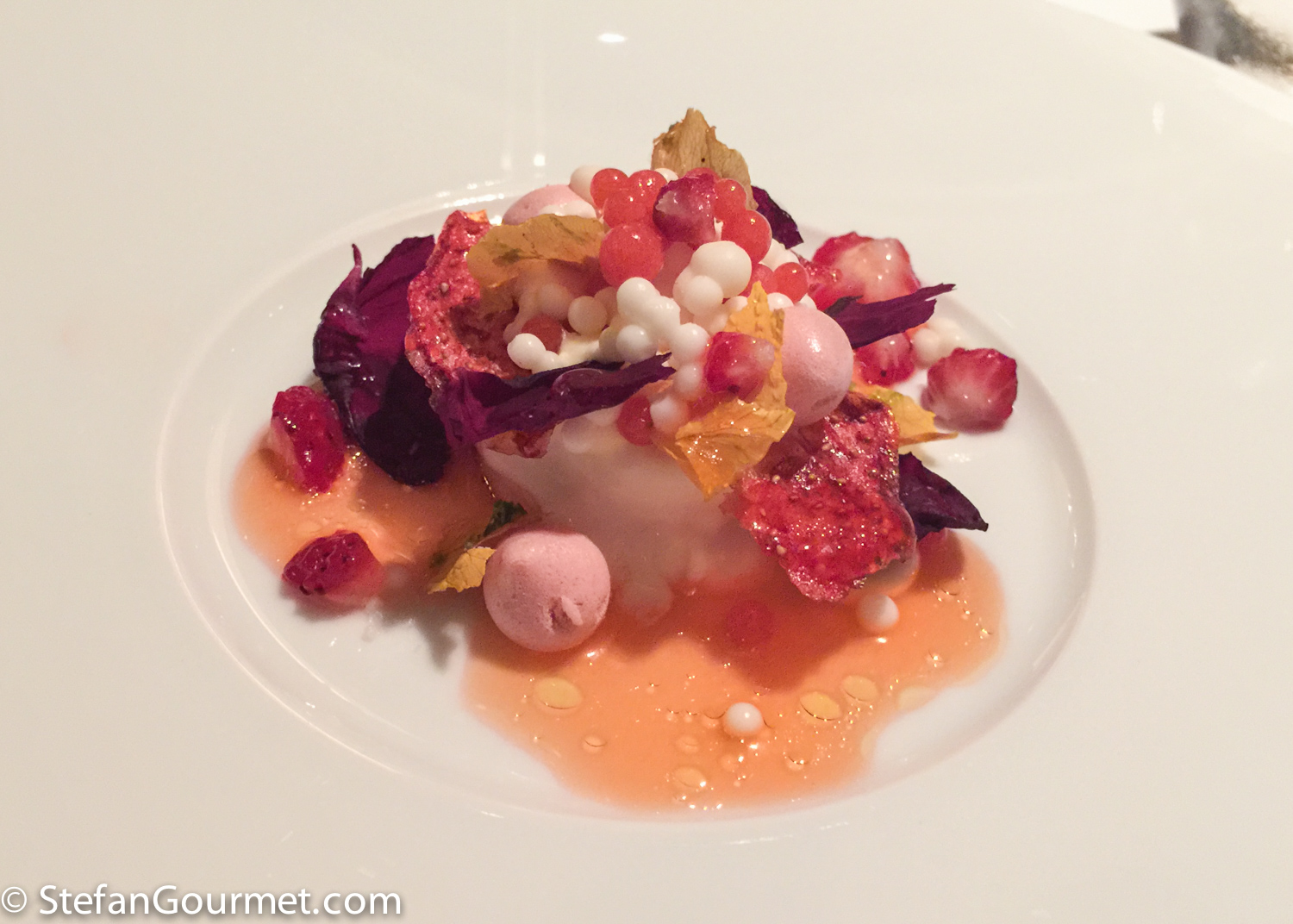 The dessert was very nice: different textures from strawberry and goat cheese. Paired outstandingly well with an Rotglipfen Auslese. 9/10