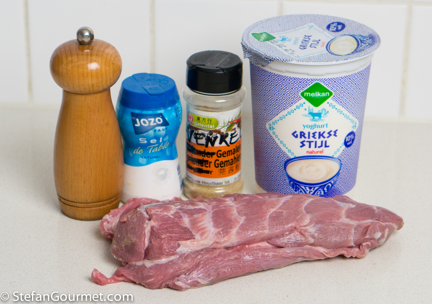 Vacuum seal 300 grams of stewing lamb (neck or shoulder) with the yogurt mixture, and cook sous-vide at 57C/135F until tender (24-48 hours, depending on the cut and age of the lamb; for the shoulder of a young lamb 24 hours suffices, while the neck of an older animal may require 48 hours).