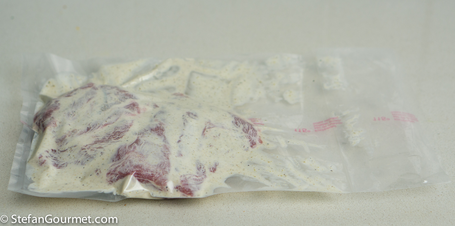 …take it out of the bag and brush with olive oil. Cook briefly on a very hot griddle to get some nice grill marks.
