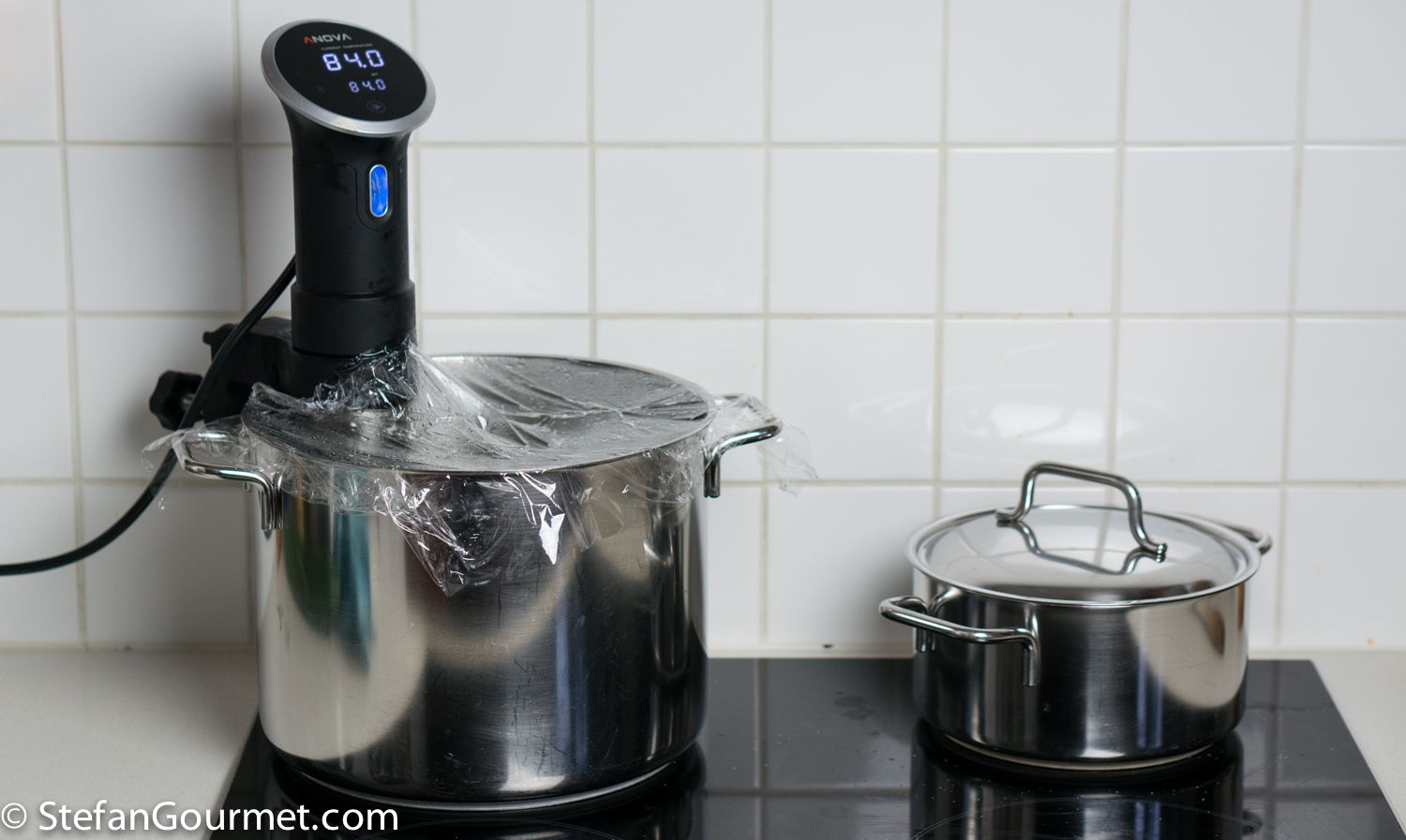 While the fennel is braising, cook the vacuum sealed quarters for an hour at 84C/183F. Here I’ve used my immersion circulator to cook the fennel, as the lamb was in the water bath at 57C/135F.