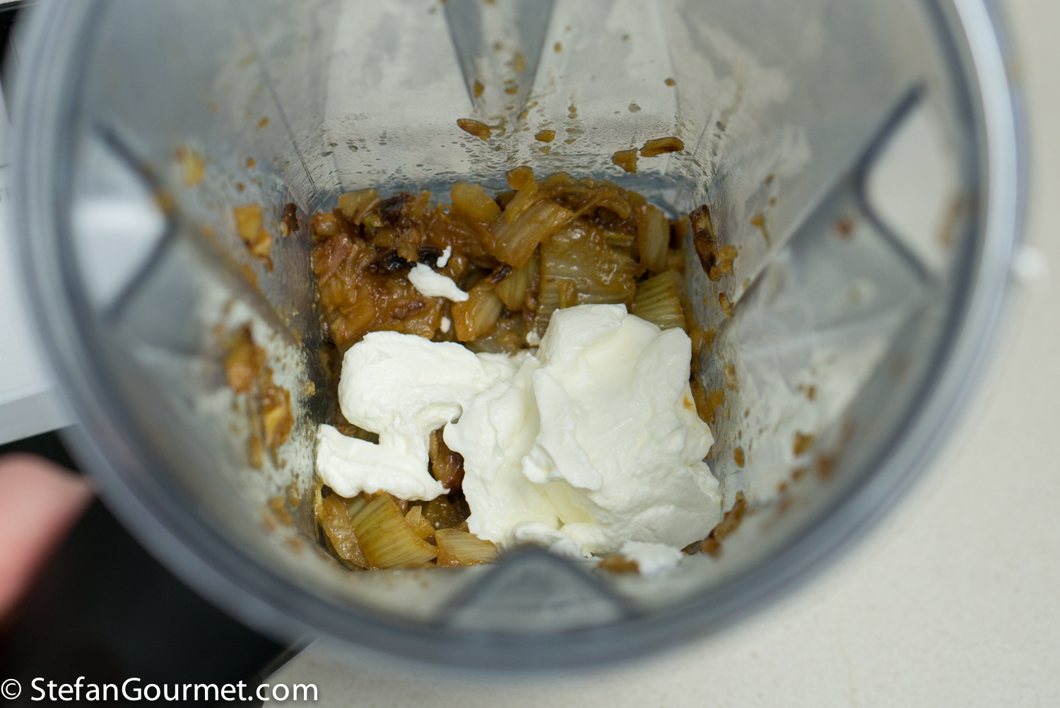 Put the caramelized fennel in a blender with 60 ml (1/4 cup) of yogurt.