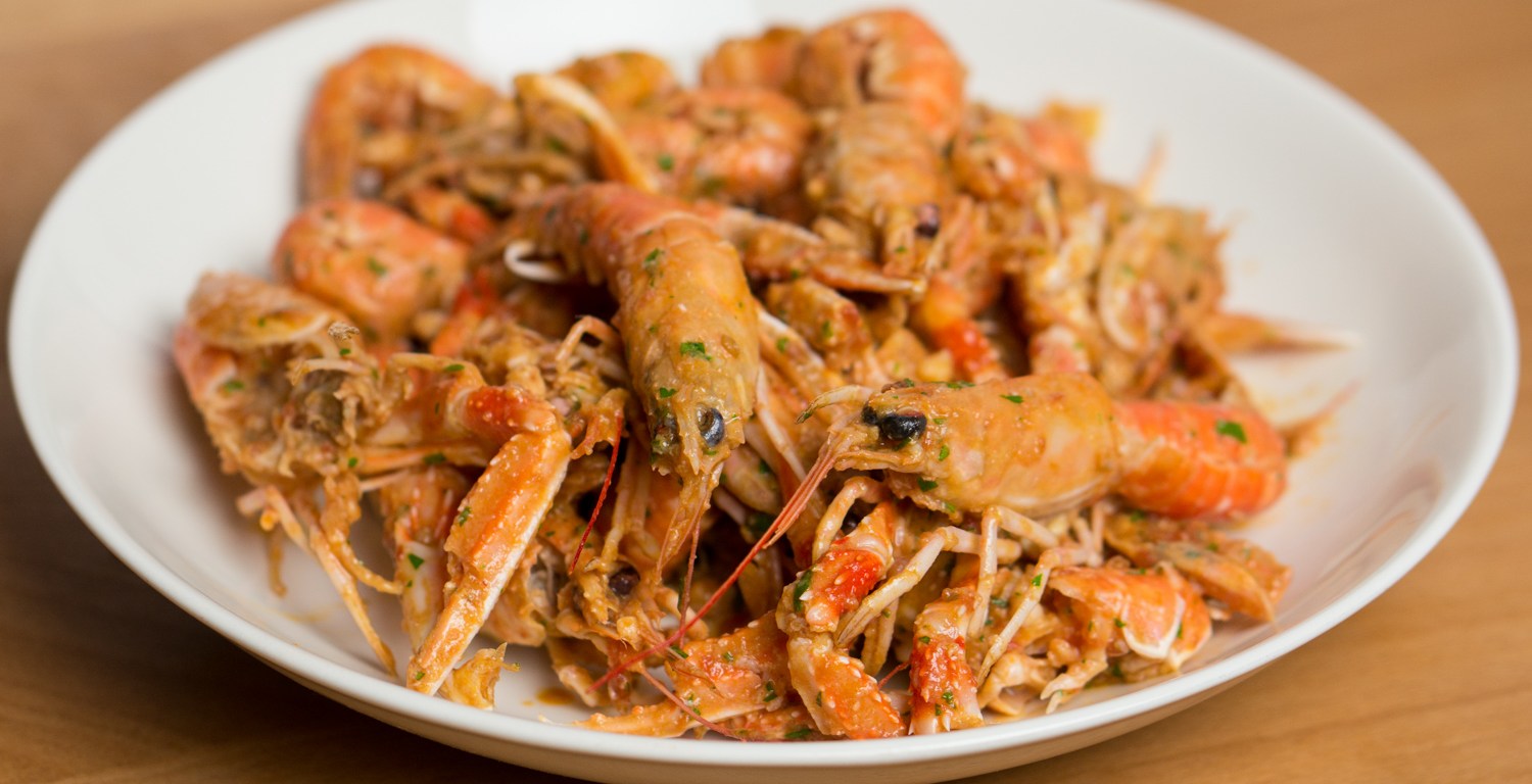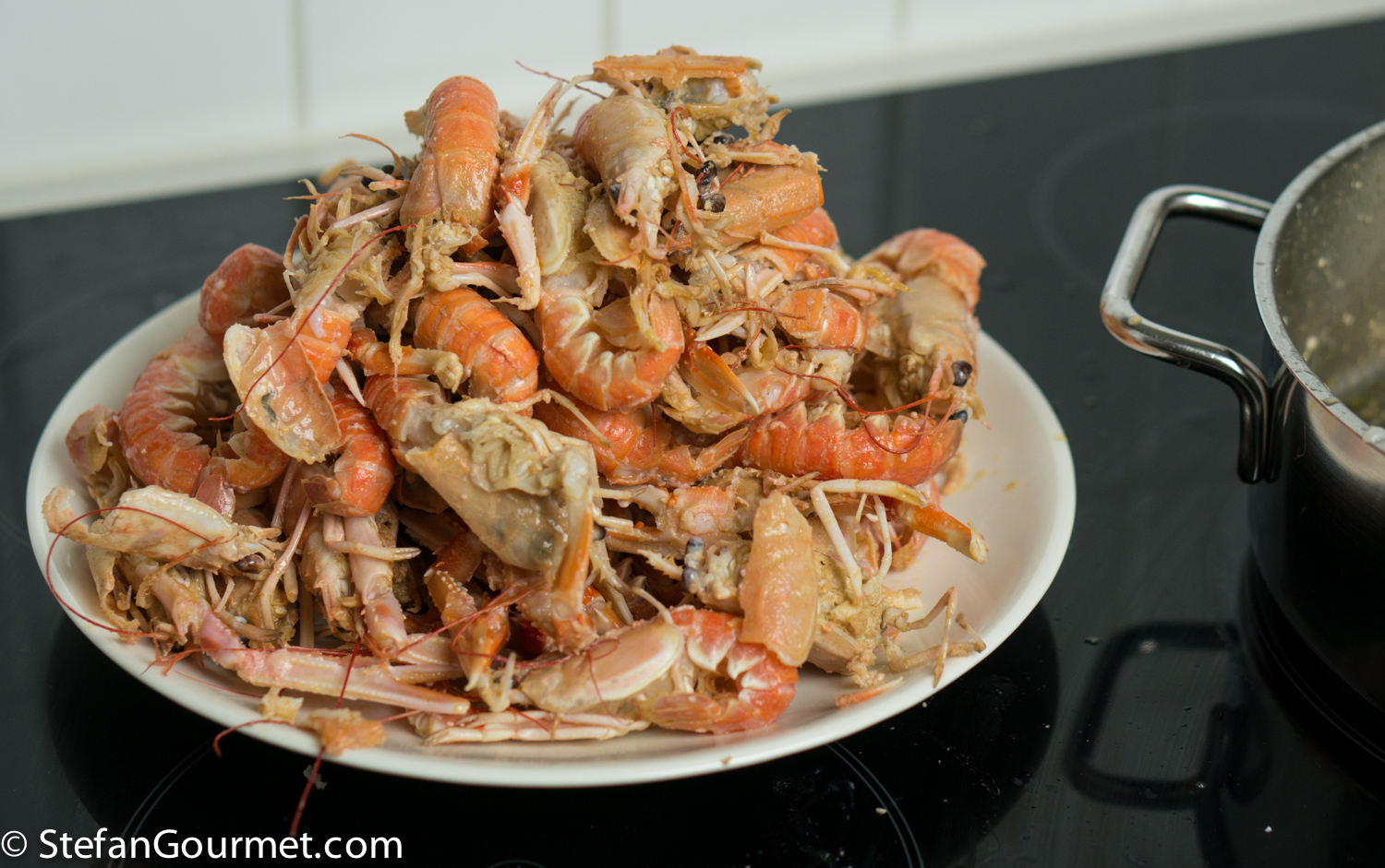By including them in the dish this way (they will be discarded before serving), there will be just a hint of chilli and garlic in the dish, which is just right for the delicate flavor of the scampi.