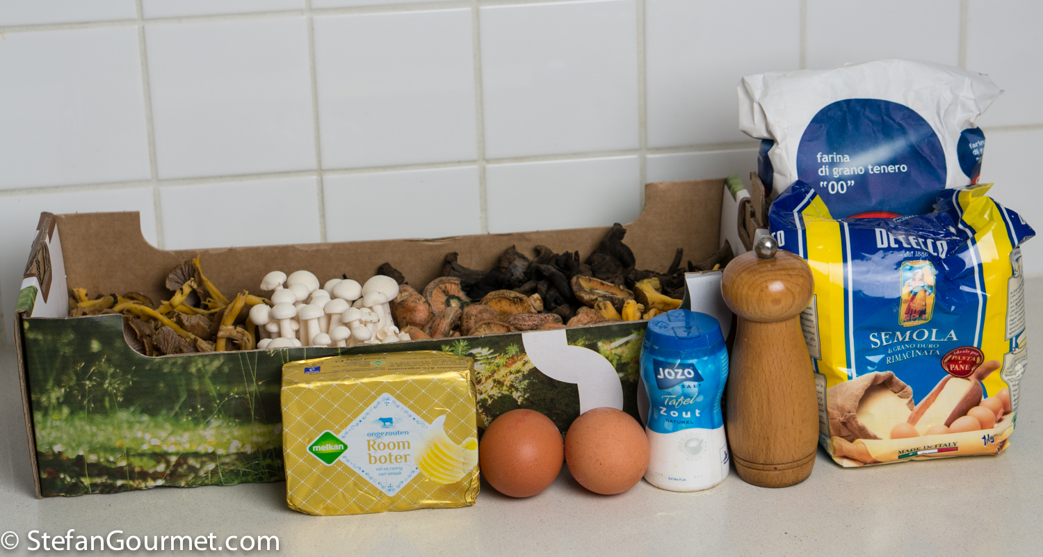 There are two posts about fresh pasta with mushrooms on this blog already: pappardelle with fresh porcini and pappardelle with dried porcini and fresh mushrooms. There are two reasons for yet another post. The first one is that during our latest trip to Italy I noticed that pasta with mushrooms was often prepared with even less ingredients. Only fresh pasta, butter or olive oil, mushrooms, salt, and perhaps a bit of parsley. No onion, no garlic, not even grated parmigiano. I also noticed that this made the mushrooms shine. And so I wanted to share such a simple recipe with you. It really is simple, provided you have some practice making fresh pasta. (If you haven’t, this is an ideal recipe to practice you fresh pasta skills with, as everything else is quick and easy).