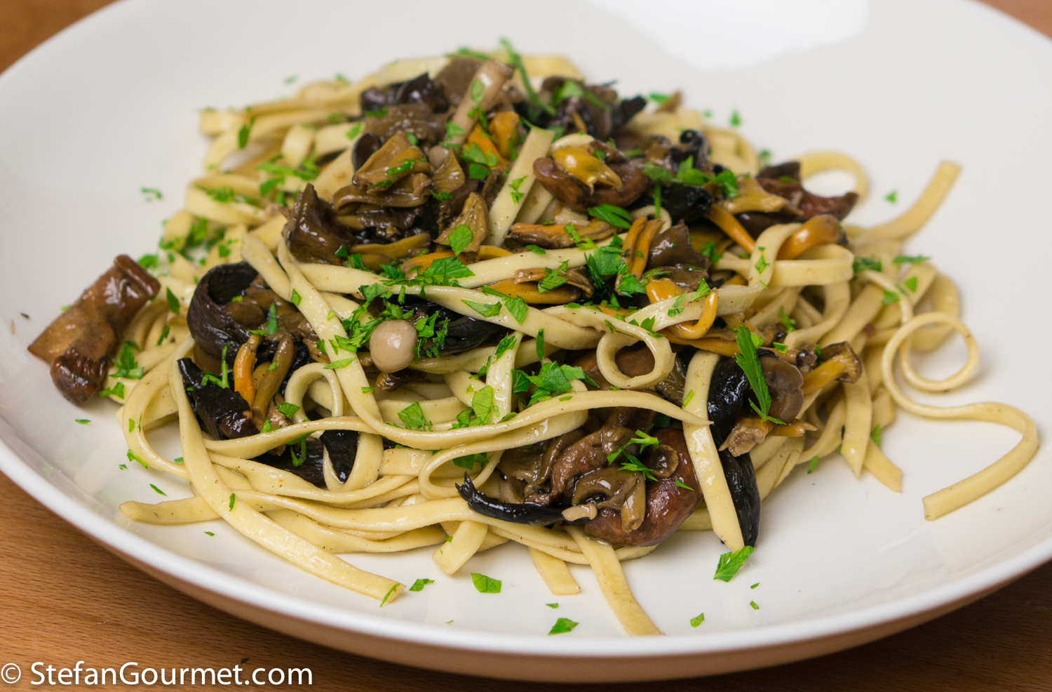 I wish I could find such a fine box of wild mushrooms around here, Stefan. You certainly did put them to good use. This pasta is beautiful and thoughtfully prepared, making sure that the mushrooms were preeminent. I may not find the variety of mushrooms but that won’t stop me from giving this dish a try. How could I not?