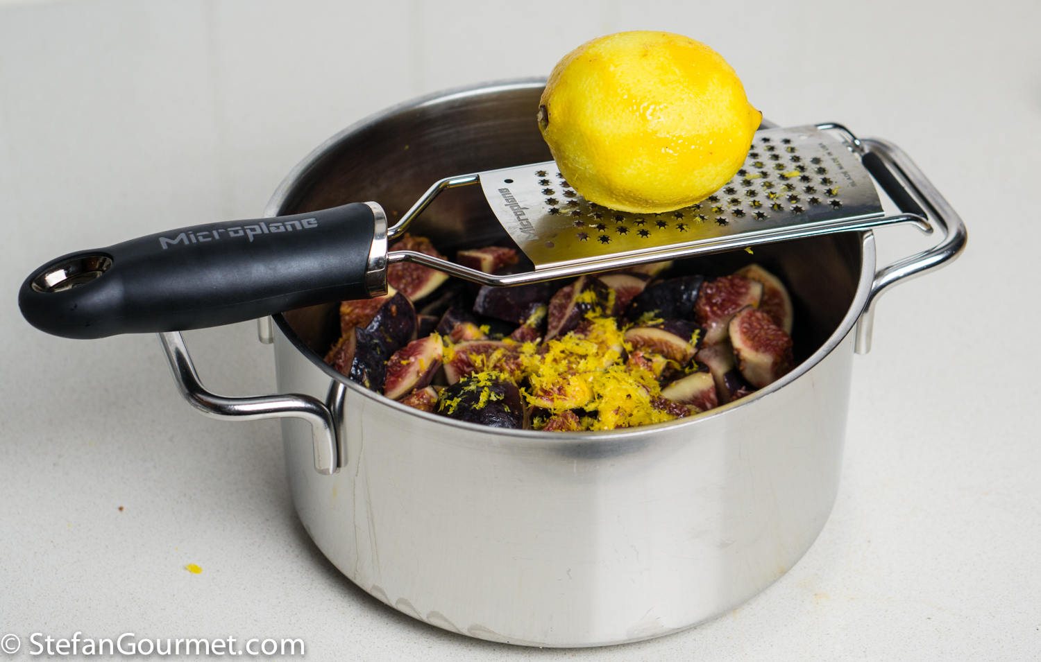 Fresh figs have to be imported and because they are quite perishable they are not often of a great quality, but sometimes some nice figs are available in the Netherlands. A nice way to use them is to make ice cream. I’ve used a recipe from SeriousEats that uses lemon zest and lemon juice to enhance the flavor, and it was very nice indeed. The recipe is quite easy as nog eggs are involved. Here’s what I did…