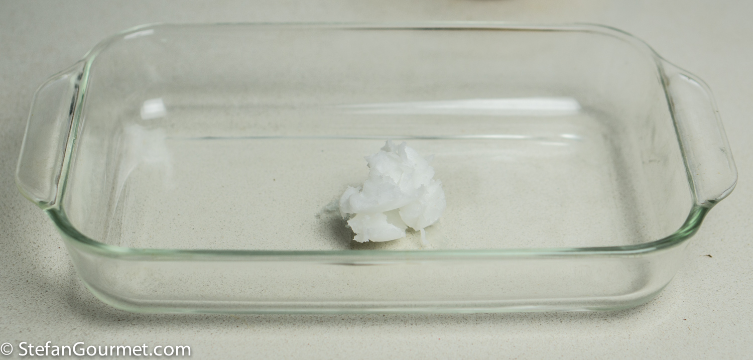 Allow the tuna to come to room temperature. Preheat the oven to 225C/440F. Put a tablespoon of coconut oil in an oven proof dish, and put it the oven until the oil has melted.