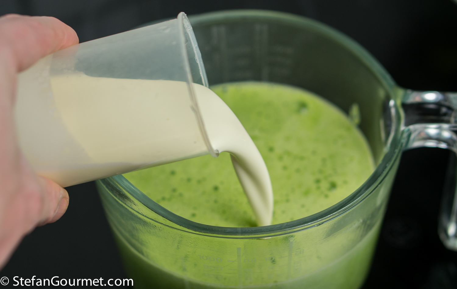 After those 10 minutes, transfer the milk and basil to a blender and blend on high speed until very smooth.