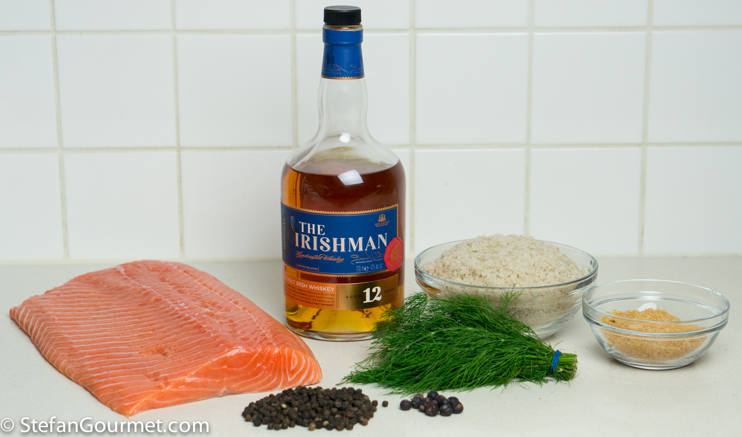 This dish started when Conor gave me a bottle of Irish whiskey. Or perhaps before that, when he posted about Authentic Irish Whiskey Irish Cold Smoked Irish Salmon. I remember seeing that post and being curious about what the whiskey would do to the smoked salmon. And so when Conor brought me a bottle of good Irish whiskey, how I could resist to try it?