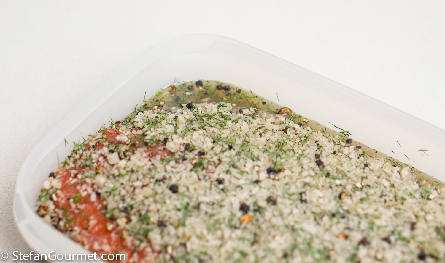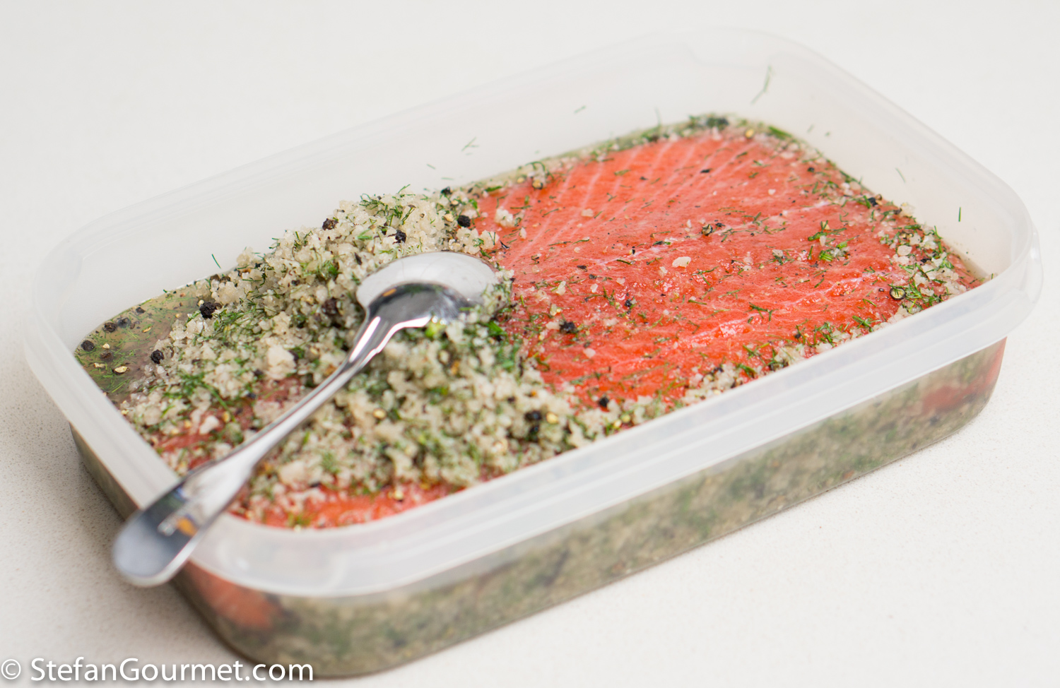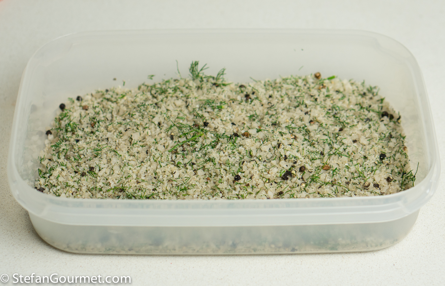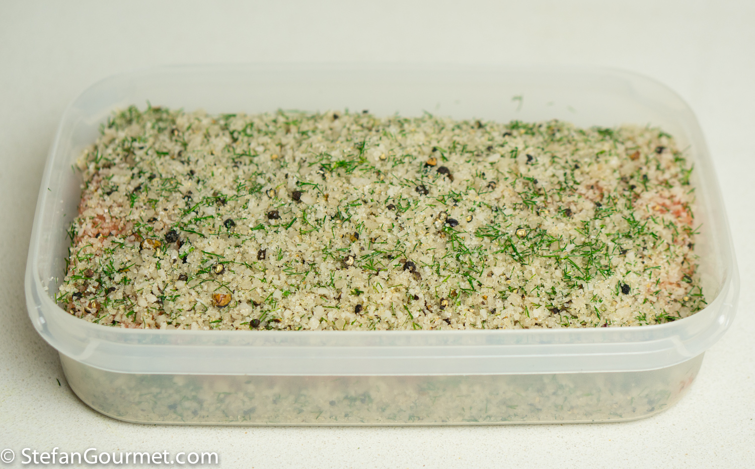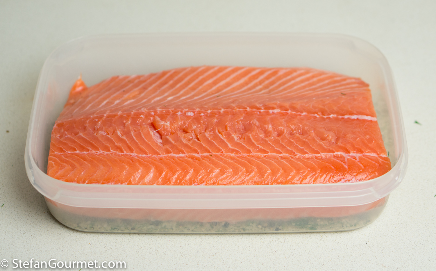 Cover the container and refrigerate for 24 to 48 hours. The salt will cure the salmon and draw out juices.